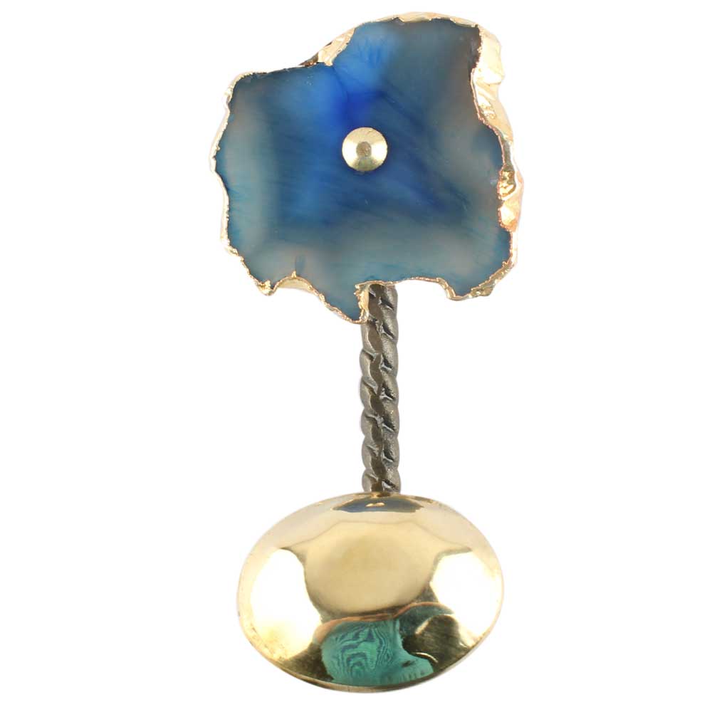 Material: Genuine slate blue agate stone with solid iron and antique brass finish