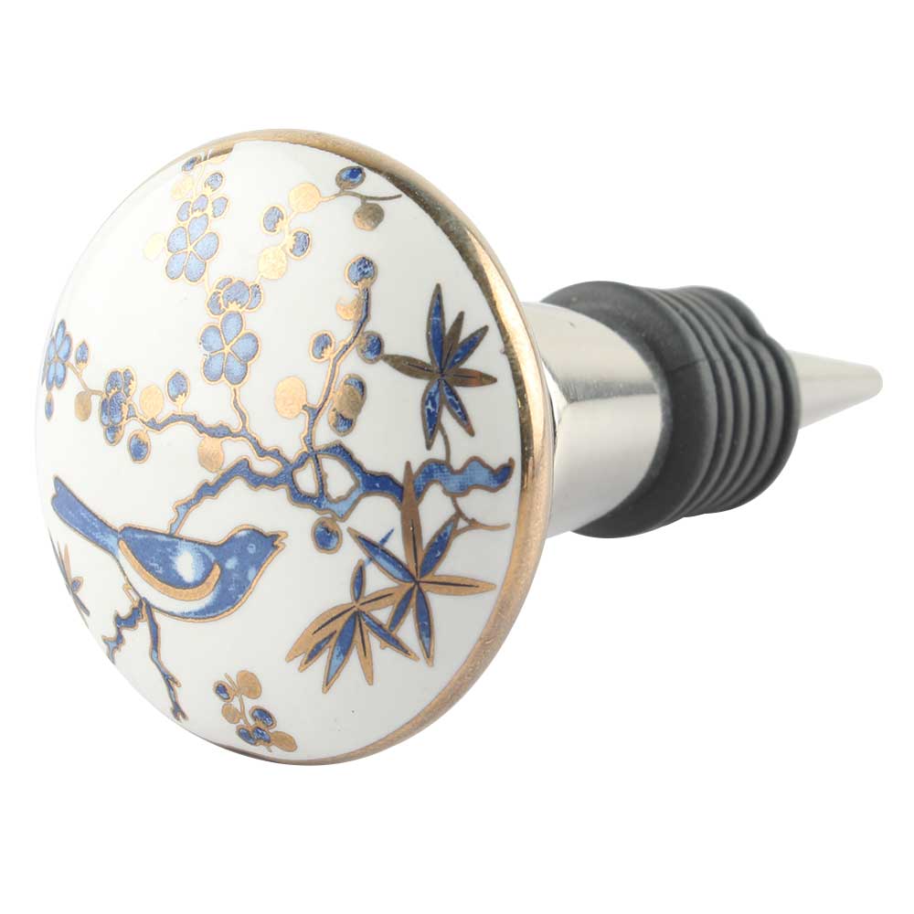 Slate Blue Bird Ceramic Floral Wine Stopper Online
