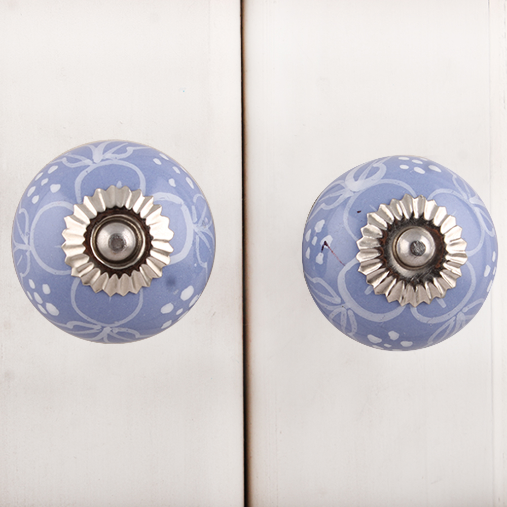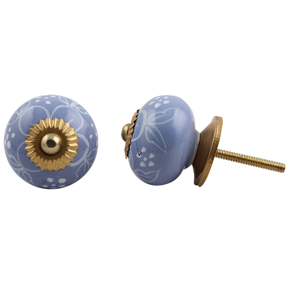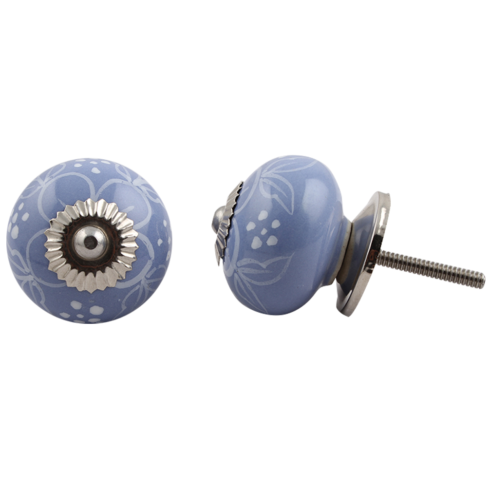 Slate Blue Floral ceramic knob. Ideal for kitchen cabinets, kitchen drawers, dining room, bed room, chest drawers, dressing tables, almirah
