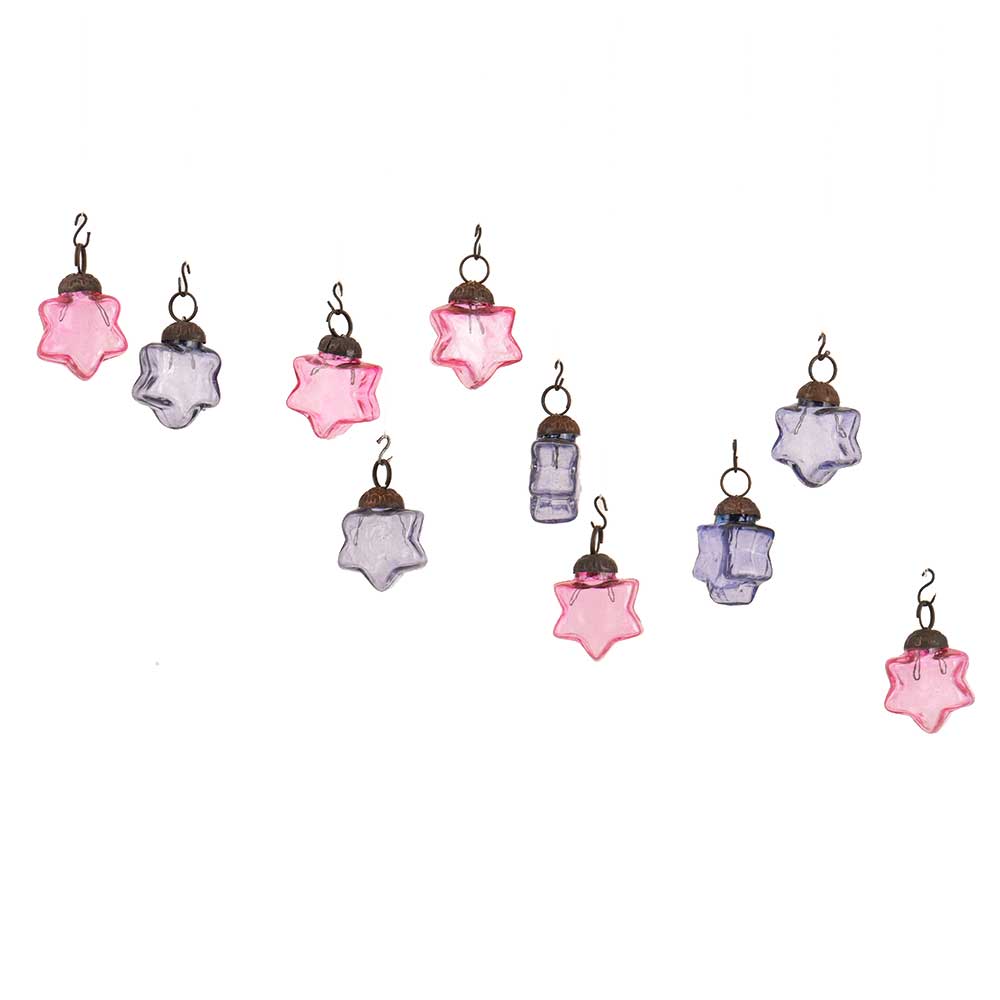 Slate Blue Purple Combo Glass Tiny Christmas Hanging Set of 25