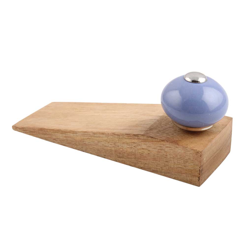Handmade Ceramic and Wooden Door Stopper.Wooden Door Stopper with a Ceramic Knob to Carry it Easily. This Wooden Door Stopper has Glue Dots under it to Ensure that it does not Slip. It is Handmade by the Craftsmen of India and this Innovative Door Stopper won't Disappoint You.