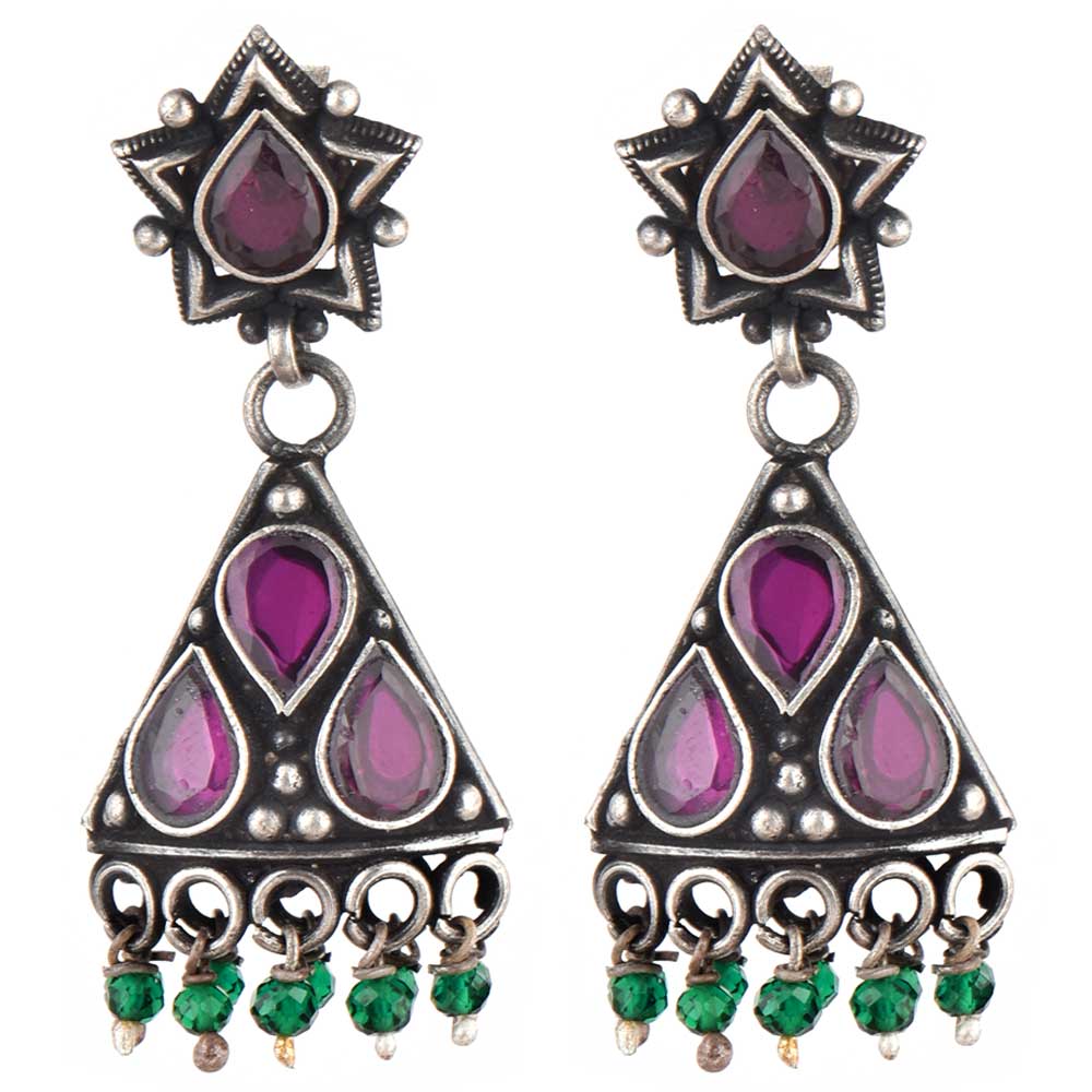 Small 92.5 Sterling silver Earrings Amethst Studded Pyramid Jhumki with Green Onyx Beads