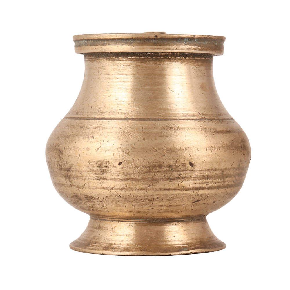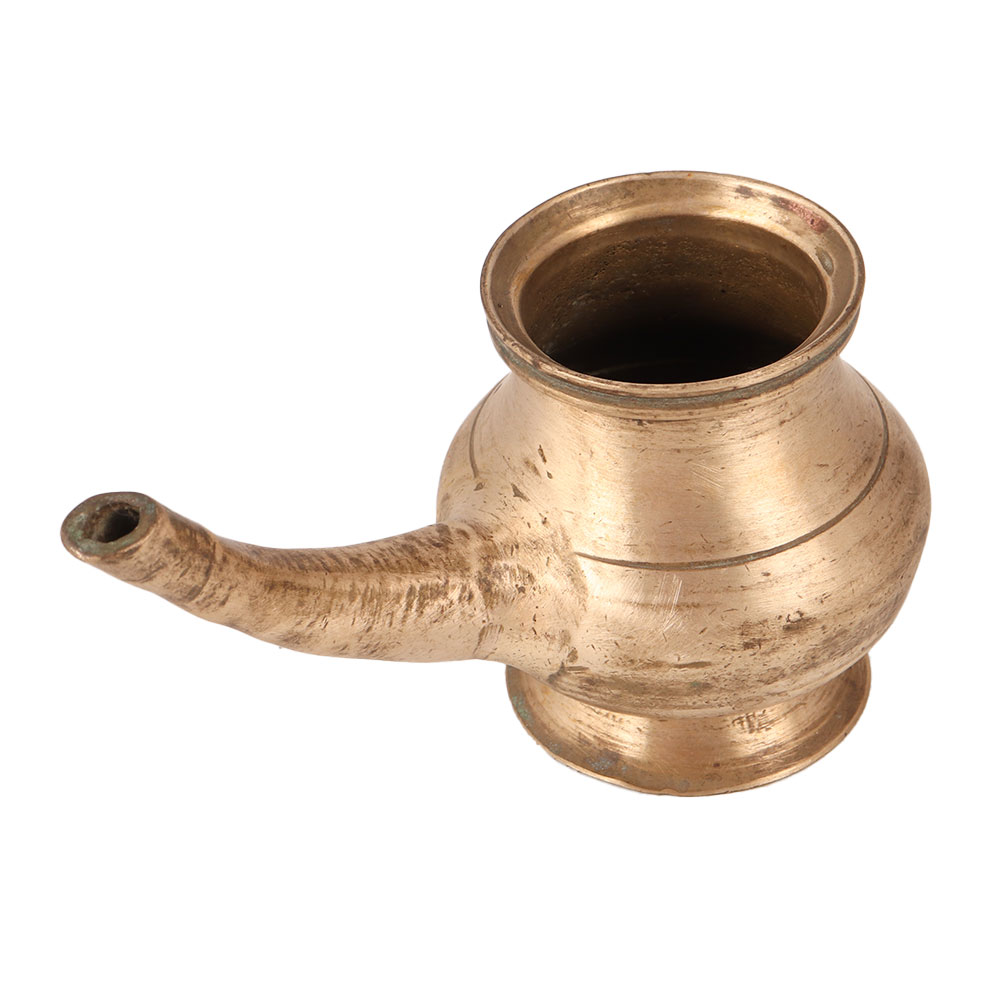 Embodying the artistry of the Himalayas, this brass water pot is a masterpiece handcrafted by highly skilled Indian artisans. Its intricate design and functional spout make it perfect for distributing holy water during temple rituals and auspicious occasions. With its vintage appeal, this water pot serves as a unique collection and decoration piece, adding a touch of elegance and spirituality to any space. It is also a meaningful gift for family, friends, and relatives, symbolizing blessings and auspiciousness. Embrace the rich cultural heritage of India and elevate your spiritual practices with this exquisite brass water pot, crafted with utmost care and devotion.