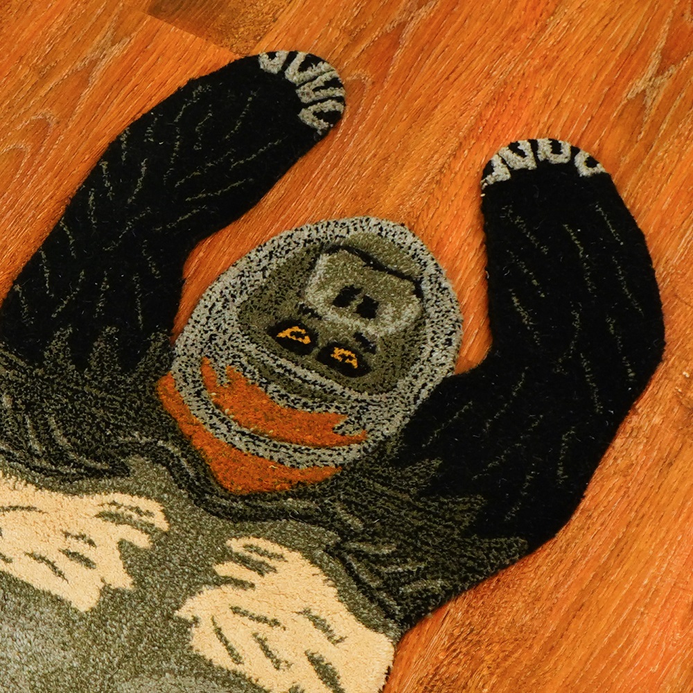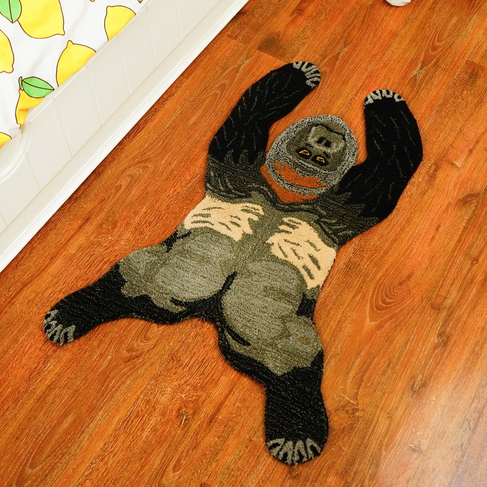 A fun rug in the shape of an animal is called Rug Groovy Gorilla . This warm, plush, and hand-tufted rug is thick. The ideal carpet for a child's room. This hand-tufted rug in the contemporary style was skillfully created with premium wool by master rug craftsmen. This rug has a cotton backing and was woven in India using only wool. Place this sophisticated carpet in your living room and bedroom, and prepare to receive many praises from your visitors.