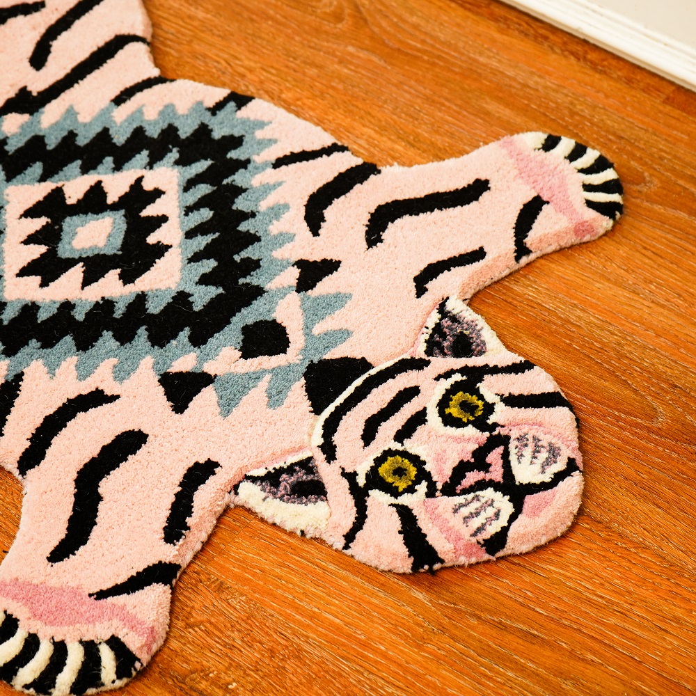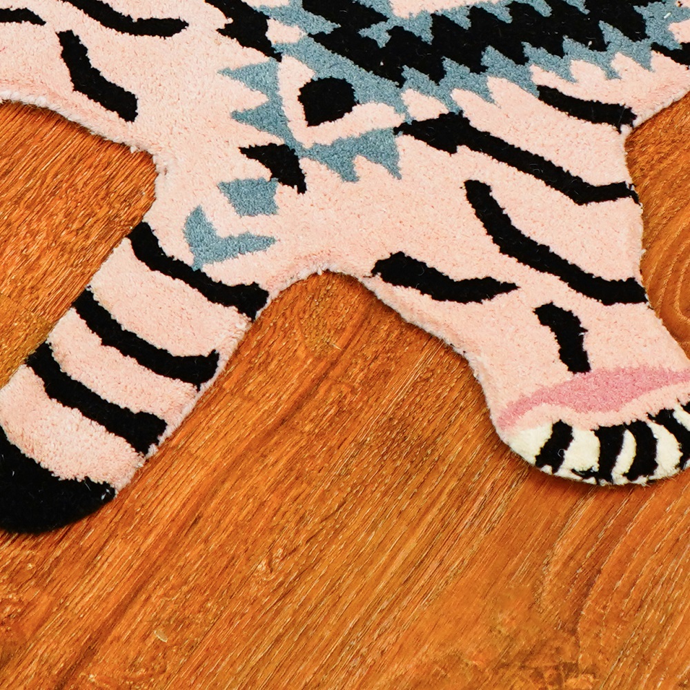 A fun rug in the shape of an animal is called Rug Mahee Majestic Tiger . This warm, plush, and hand-tufted rug is thick. The ideal carpet for a child's room. This hand-tufted rug in the contemporary style was skillfully created with premium wool by master rug craftsmen. This rug has a cotton backing and was woven in India using only wool. Place this sophisticated carpet in your living room and bedroom, and prepare to receive many praises from your visitors.
