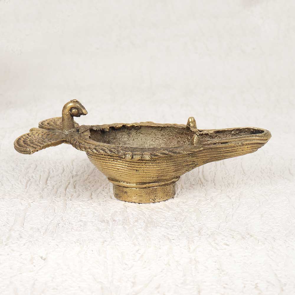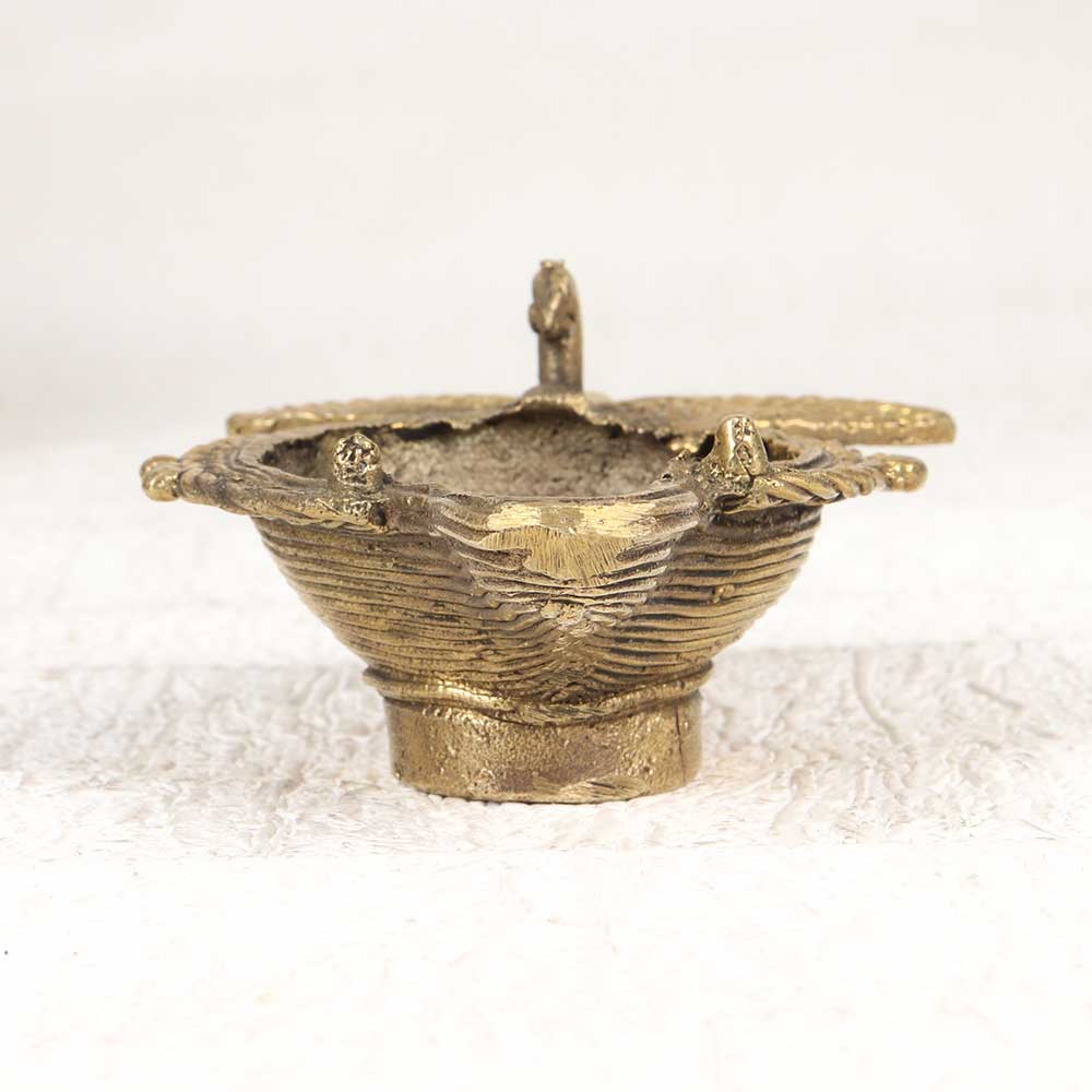 Small Vintage Brass Oil Lamp from Odisha for Decoration