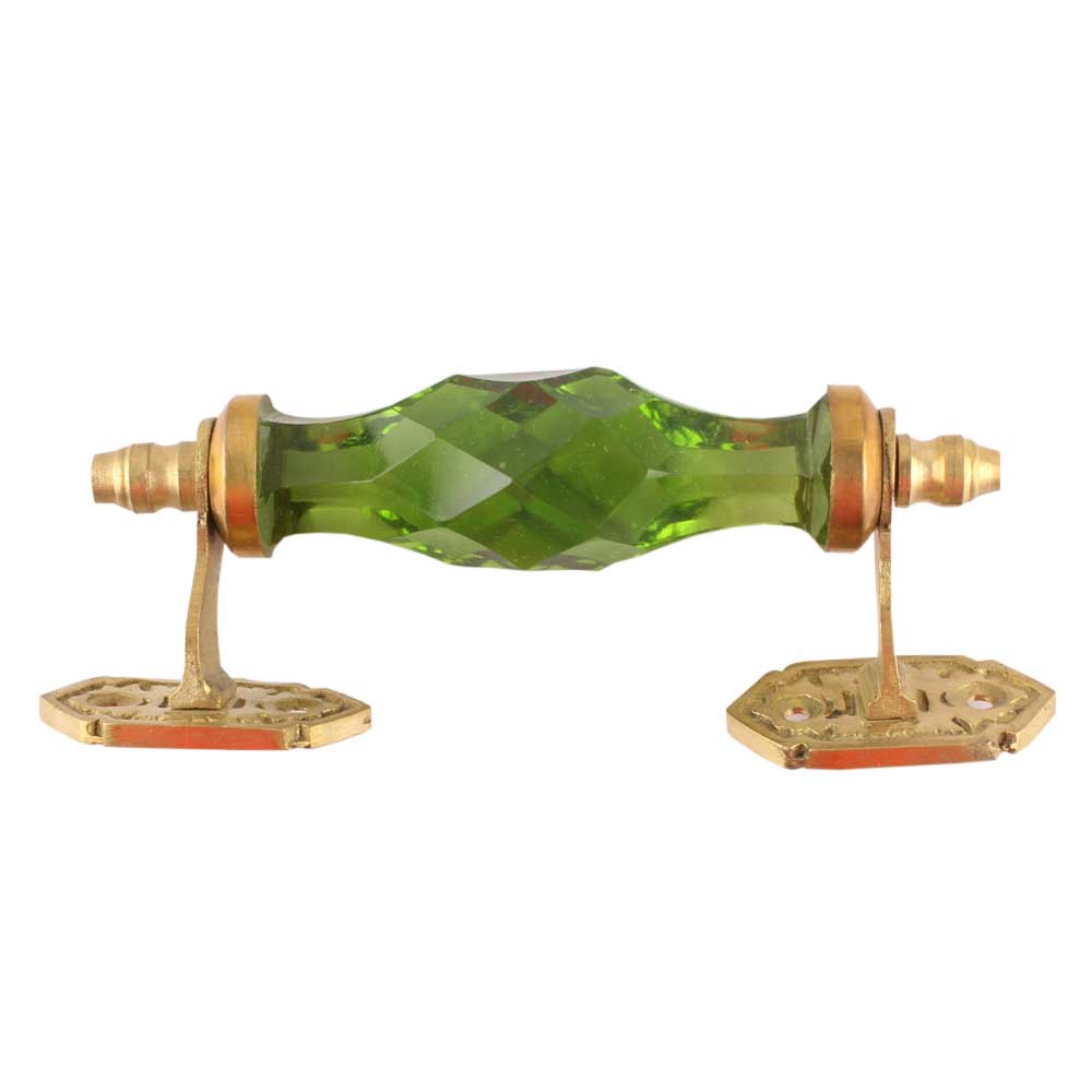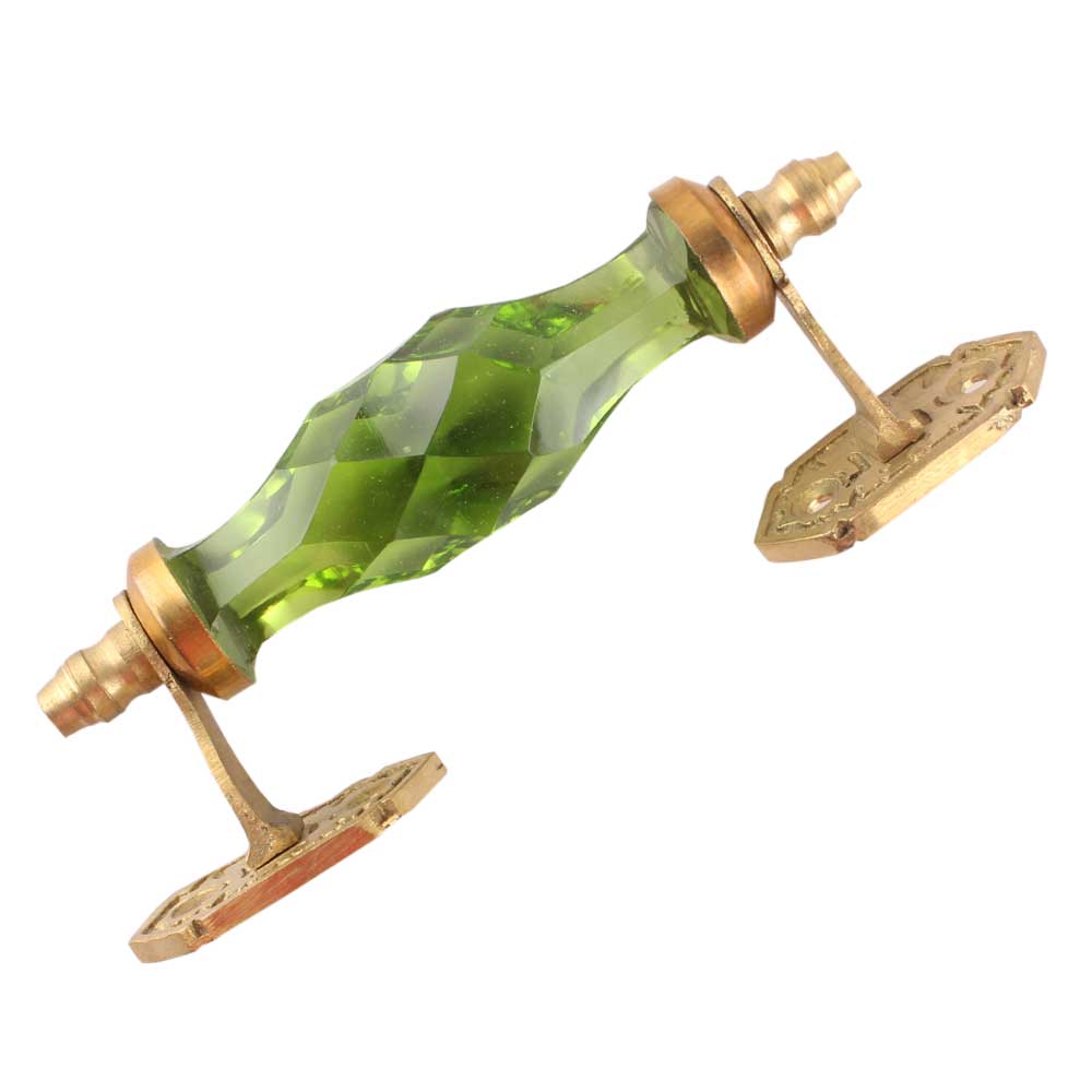 Smokey Green Cut Glass Door Handle in Golden Fitting. Ideal for Drawer, Dresser, Cabinet, Wardrobe, Cupboard and Almirah etc.