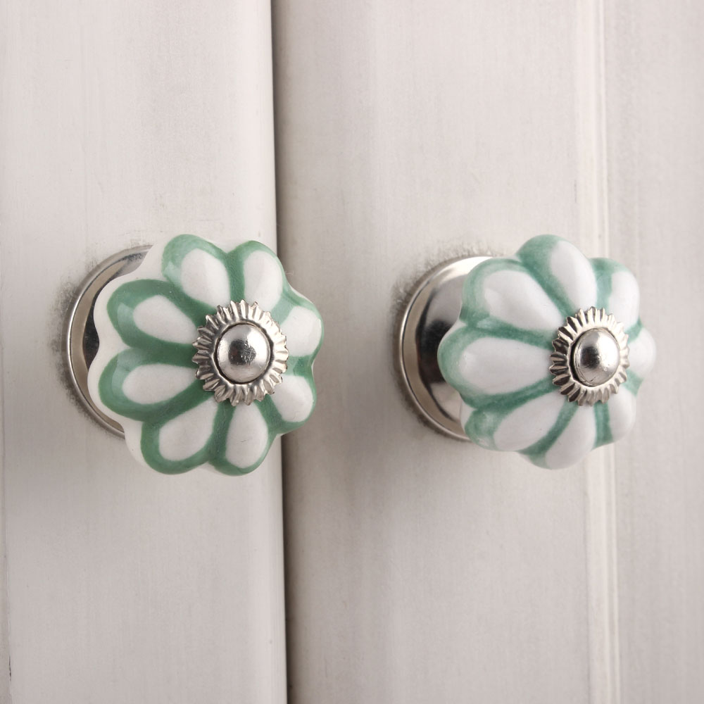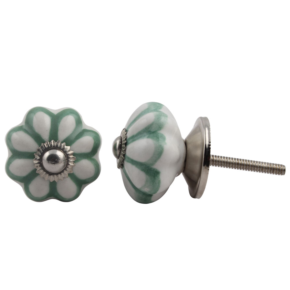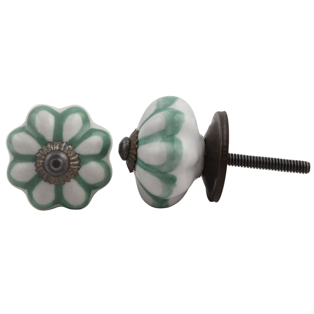 Smoky Green Sunflower Medium Melon Ceramic knob. Ideal for kitchen cabinets, kitchen drawers, dining room, bed room, chest drawers, dressing tables, almirah