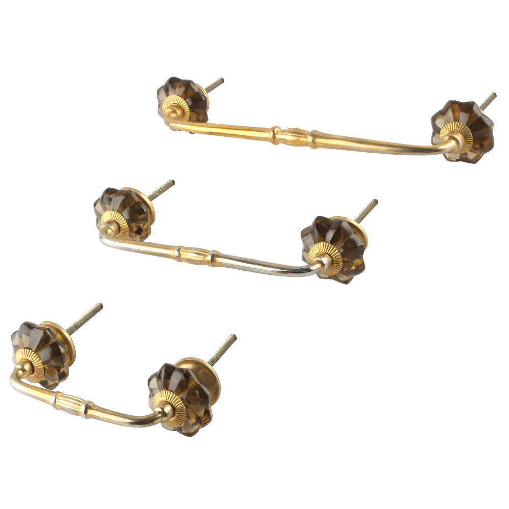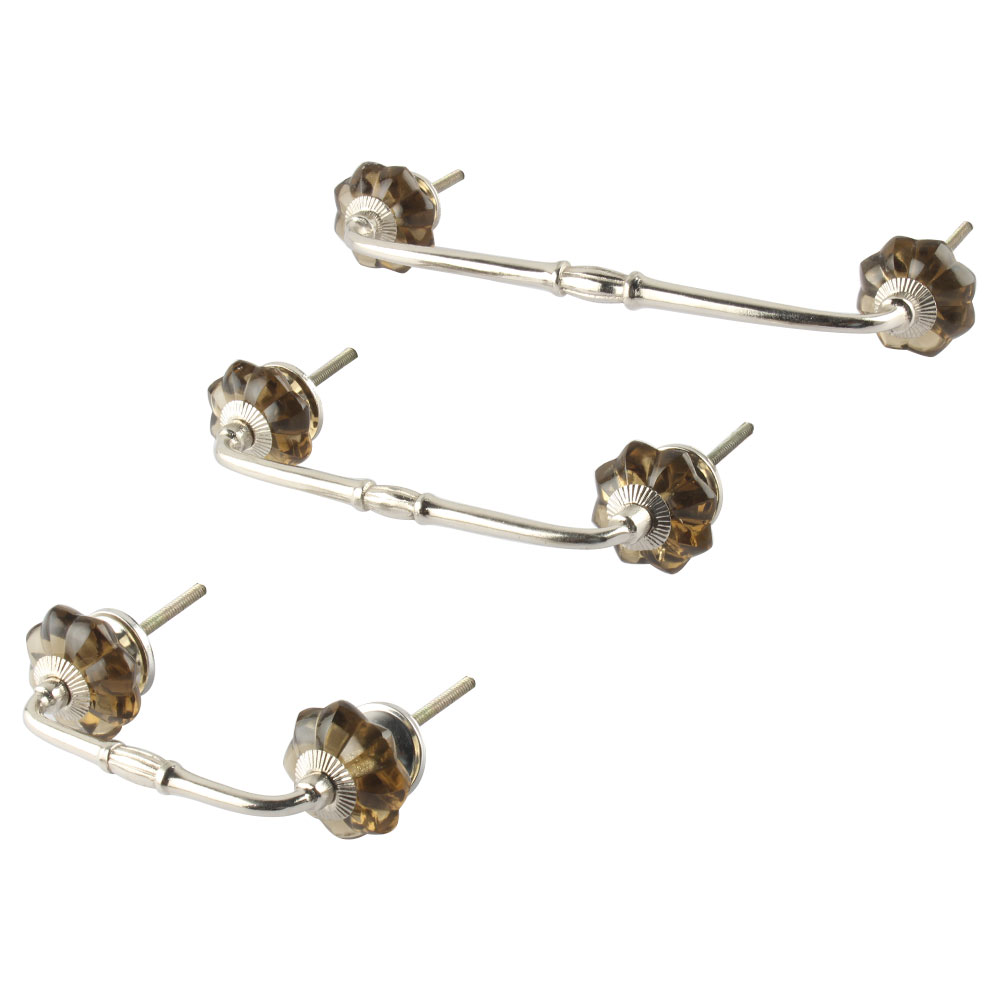 Smoky Melon Glass Bridge Handle. Ideal for Drawer, Dresser, Cabinet, Wardrobe, Cupboard and Almirah.