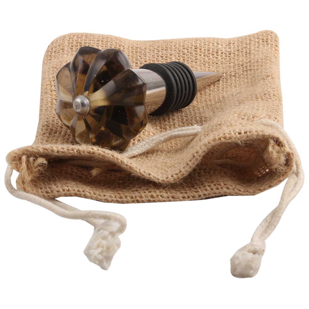 Smoky Melon Glass Wine Stopper.zinc alloy wine bottle stopper with attractive Jute Bag Packaging.