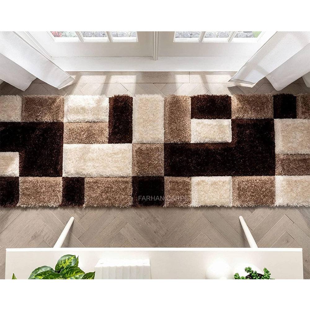 Bring warmth and texture into your interiors with this Ivory, Beige & Brown polyester shaggy rug. Designed with a bold block pattern, it adds depth and comfort to modern living rooms, bedrooms, and boutique spaces. Packed & quality-checked by Indianshelf.