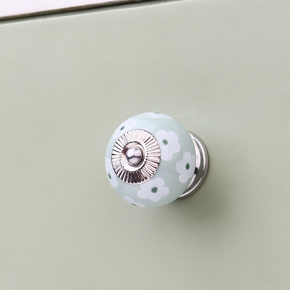 Soft Green Tiny ceramic knob. Ideal for kitchen cabinets, kitchen drawers, dining room, bed room, chest drawers, dressing tables, almirah