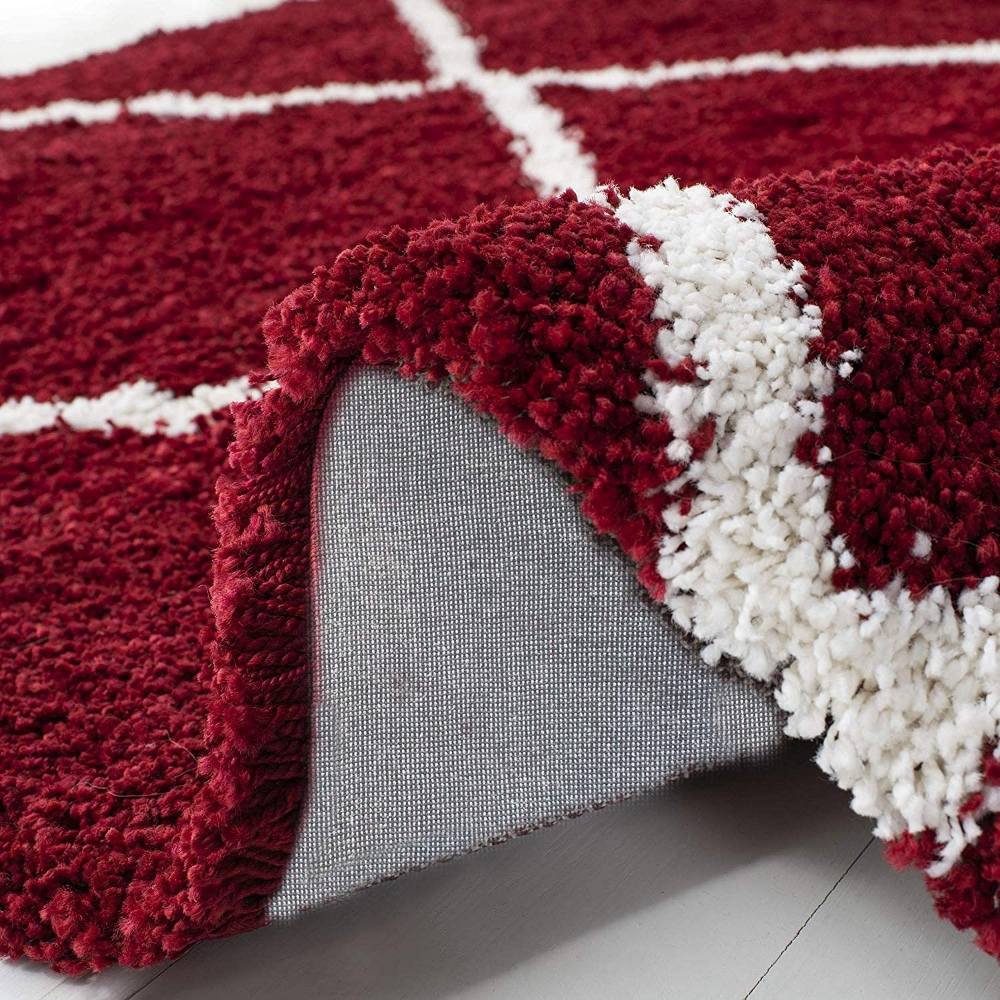 This Red & Ivory shaggy rug, made from premium microfiber, features a striking geometric grid pattern that adds depth and structure to your decor. Its soft pile and rich tones combine modern elegance with cozy comfort. Each rug is handcrafted, carefully packed, and quality-checked by Indianshelf artisans.