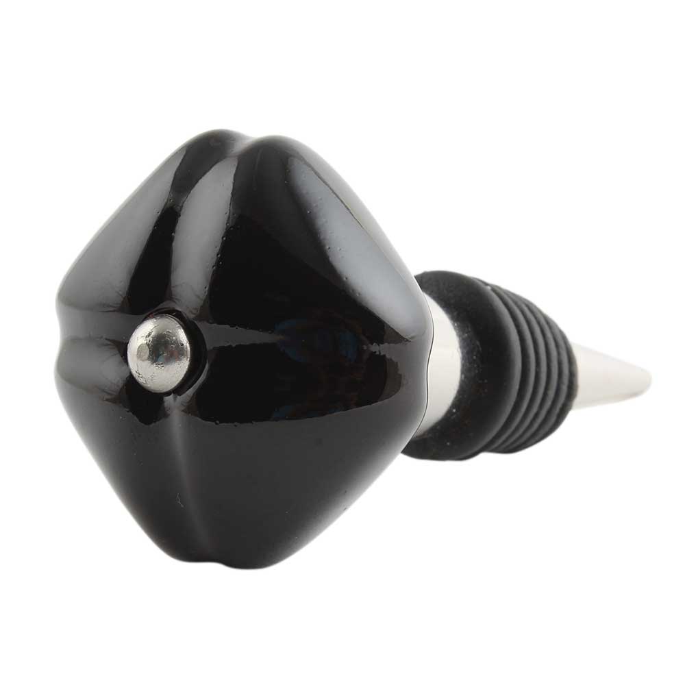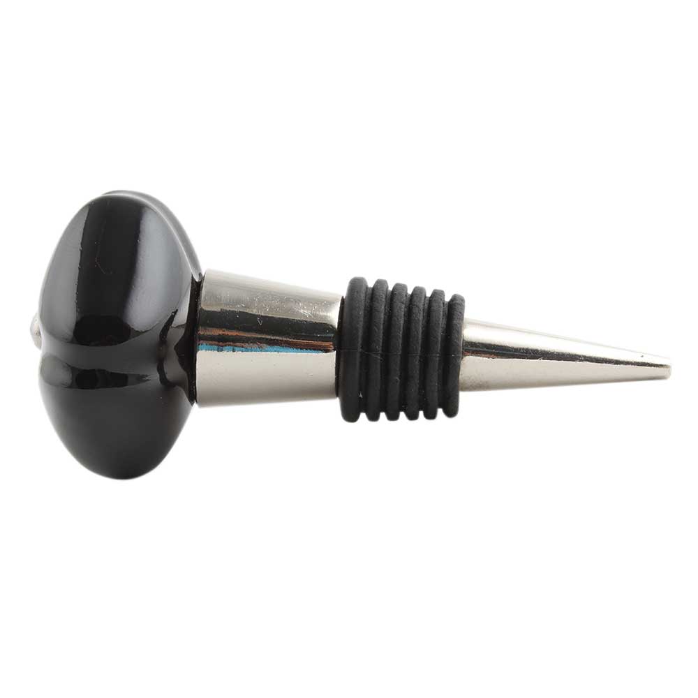 Solid Black Mediium Square Ceramic Wine Bottle Stopper. Zinc Alloy Wine Bottle Stopper with Attractive Jute Bag Packaging.