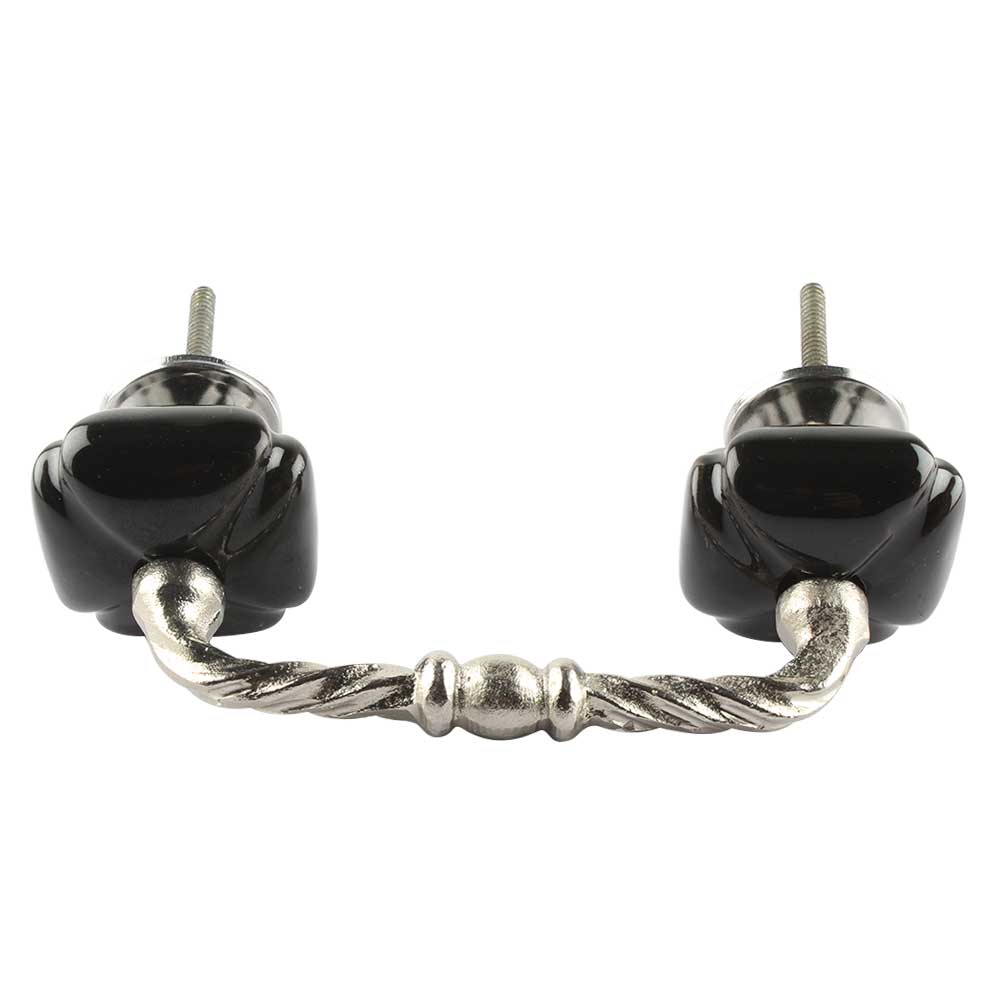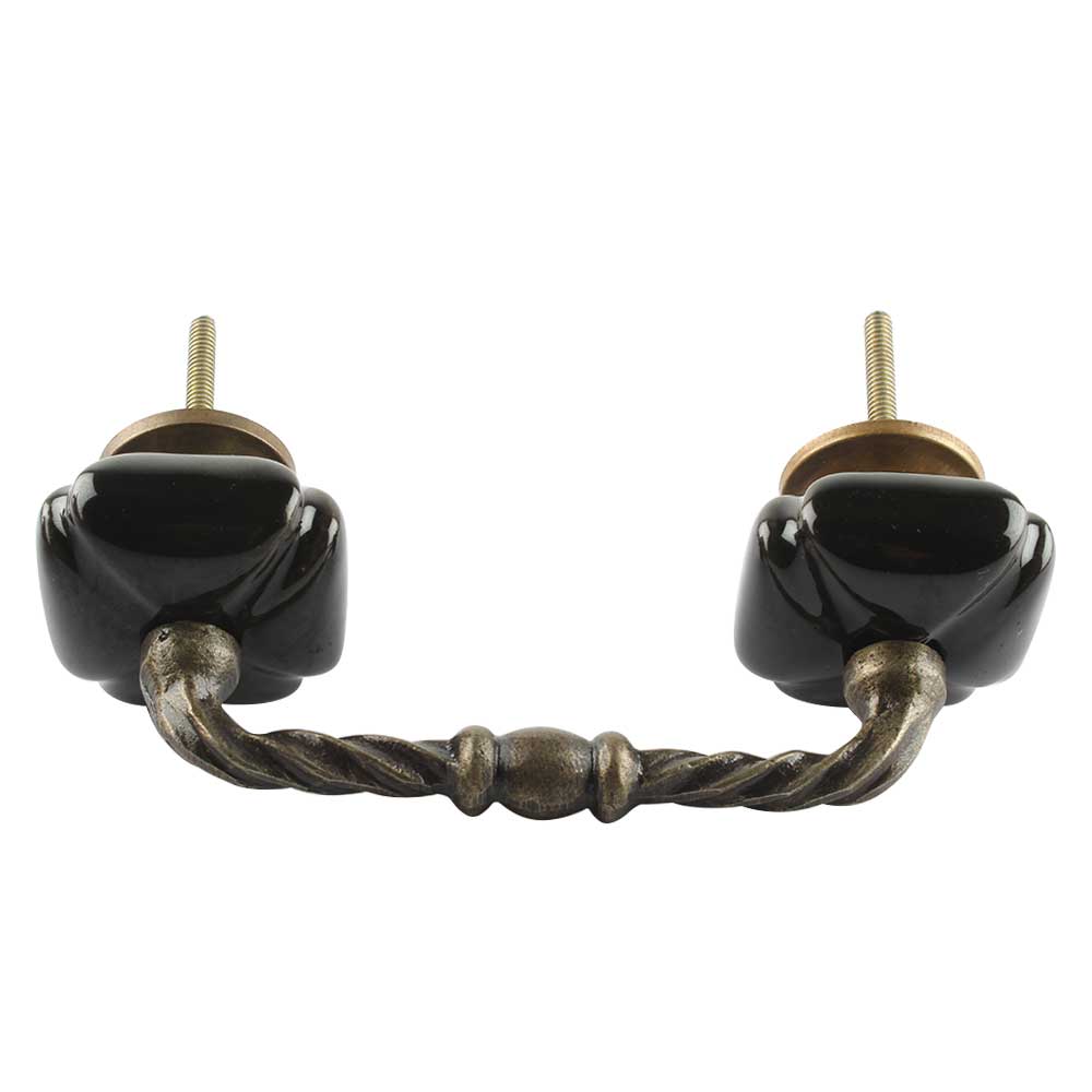 Solid Black Square Ceramic Cut Bridge Handle. Ideal for Drawer, Dresser, Cabinet, Wardrobe, Cupboard and Almirah etc.