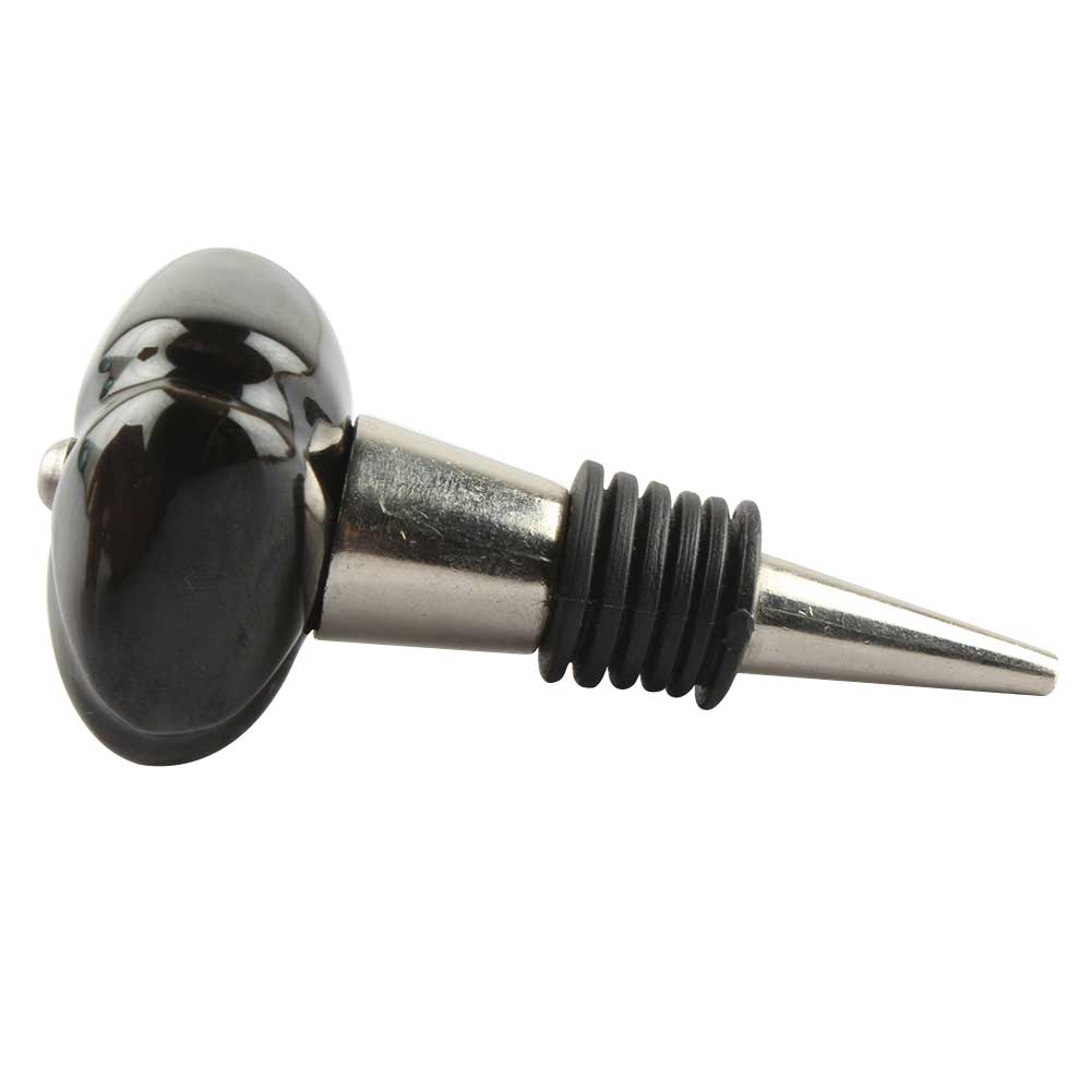 Solid Black Square Ceramic Wine Stopper. Zinc Alloy Wine Bottle Stopper with Attractive Jute Bag Packaging.