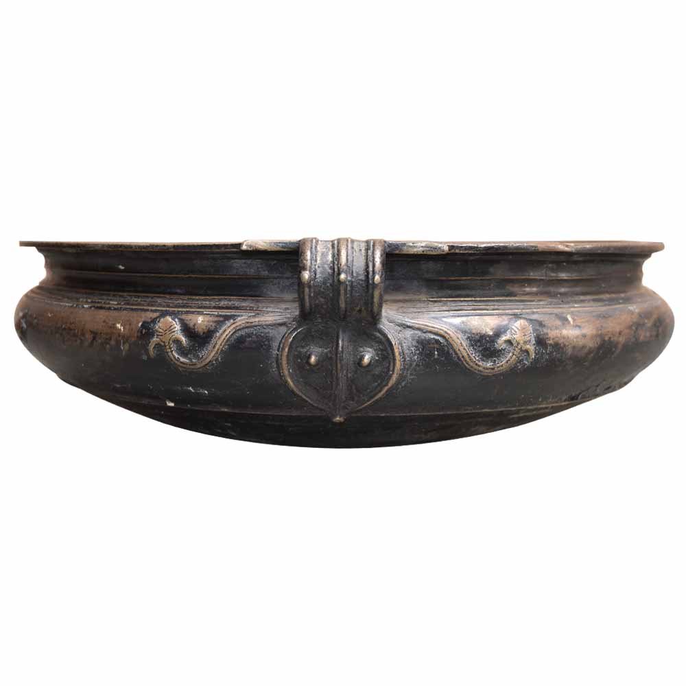 Bronze Urli. Ideal to put flowers and floating candles and use it as a perfect indoor/outdoor decoration. It is completly done by hand. It serves as a beautiful bronze bird bath too.
