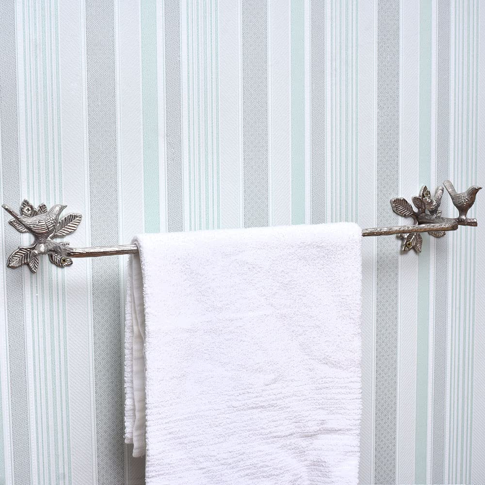 Indianshelf.com for bulk/wholesale orders.Indianshelf.us for personal purchases.This beautifully crafted Solid Brass Silver Bird Branch Bird Towel Rod brings an exquisite blend of nature and functionality into your home. Designed with a delicate, bird-inspired motif, this towel rod is not just a practical addition to your bathroom or kitchen but also a stunning piece of decorative art. The intricate silver finish combined with the natural elegance of brass creates a timeless, sophisticated look that complements both traditional and modern interiors. Perfect for adding a touch of elegance to your space while keeping towels neatly hung, it is a must-have for those who appreciate artistry in everyday items.
