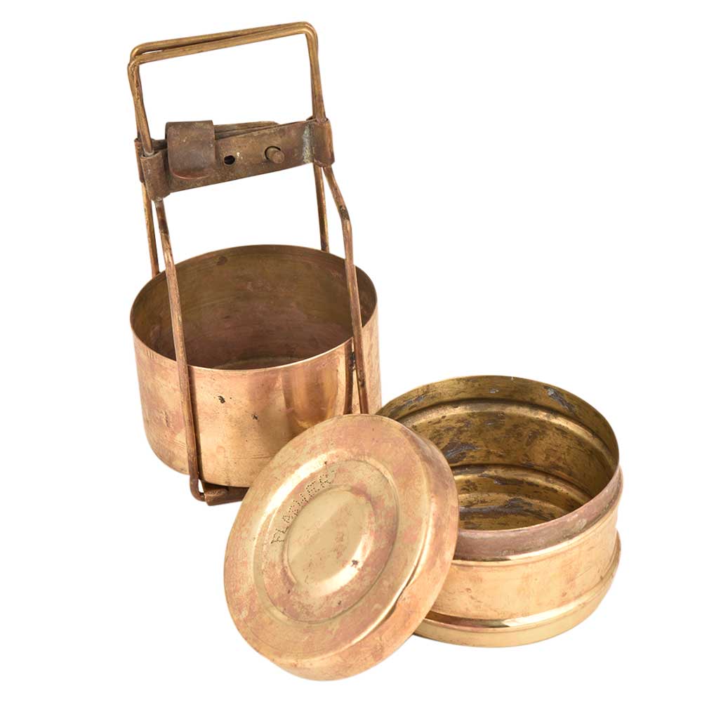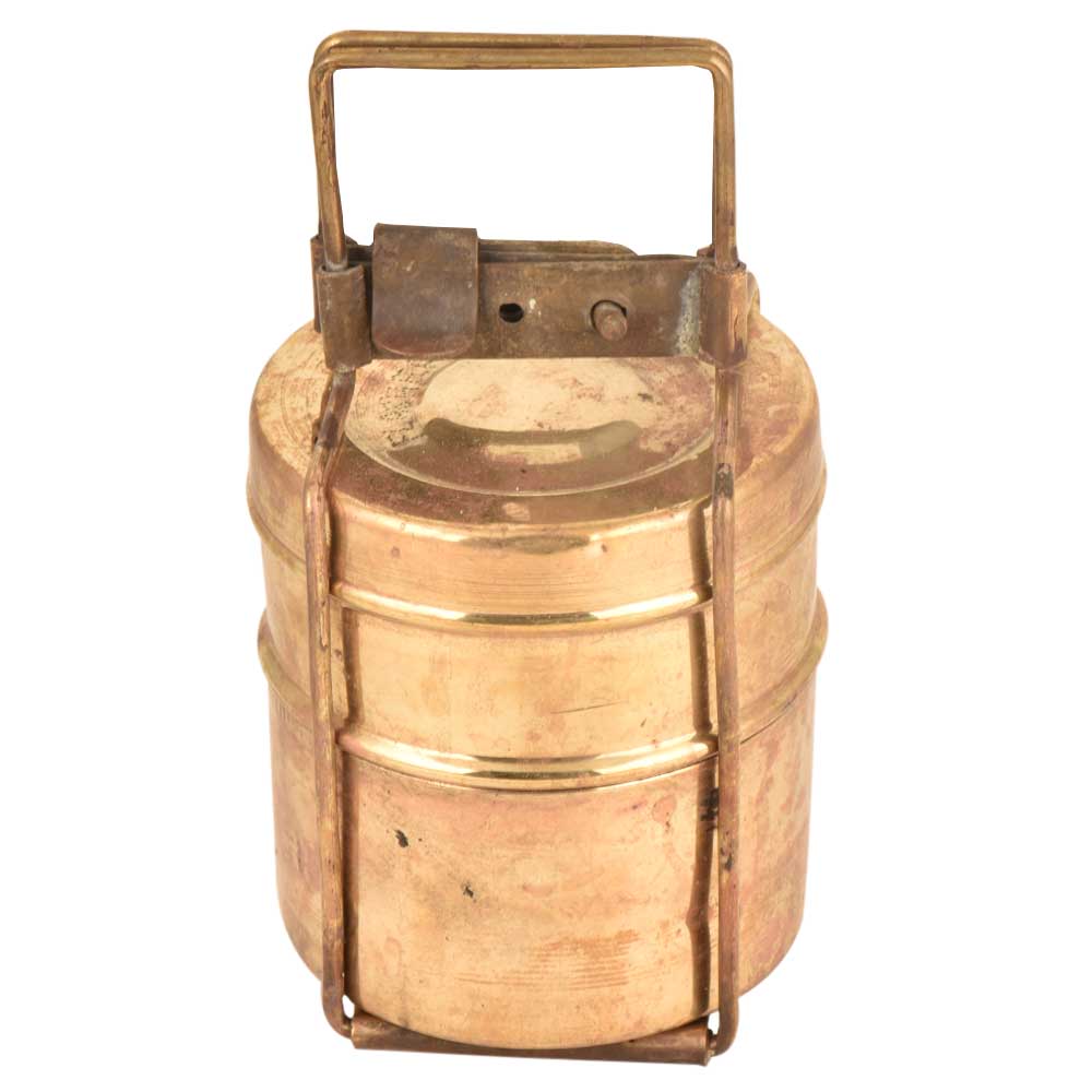 • Solid Brass Two Tiered Tiffin Box With Lock System
