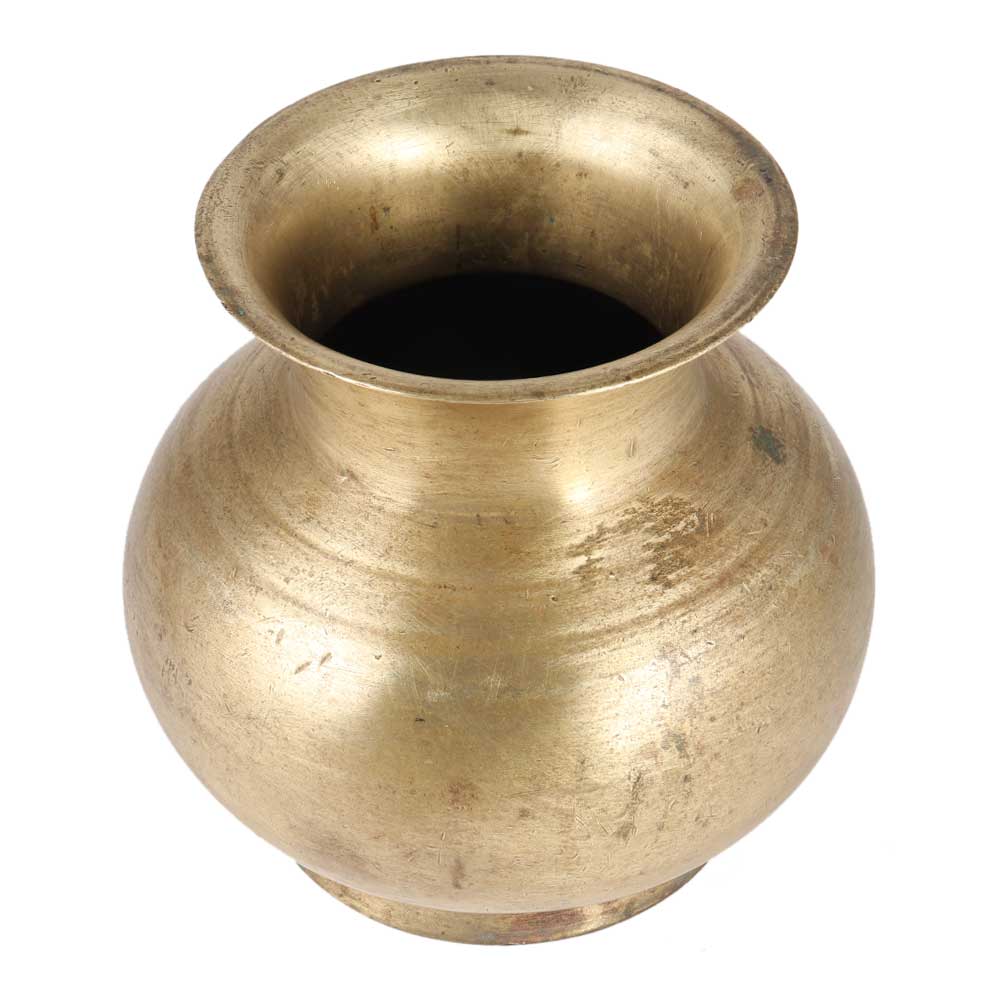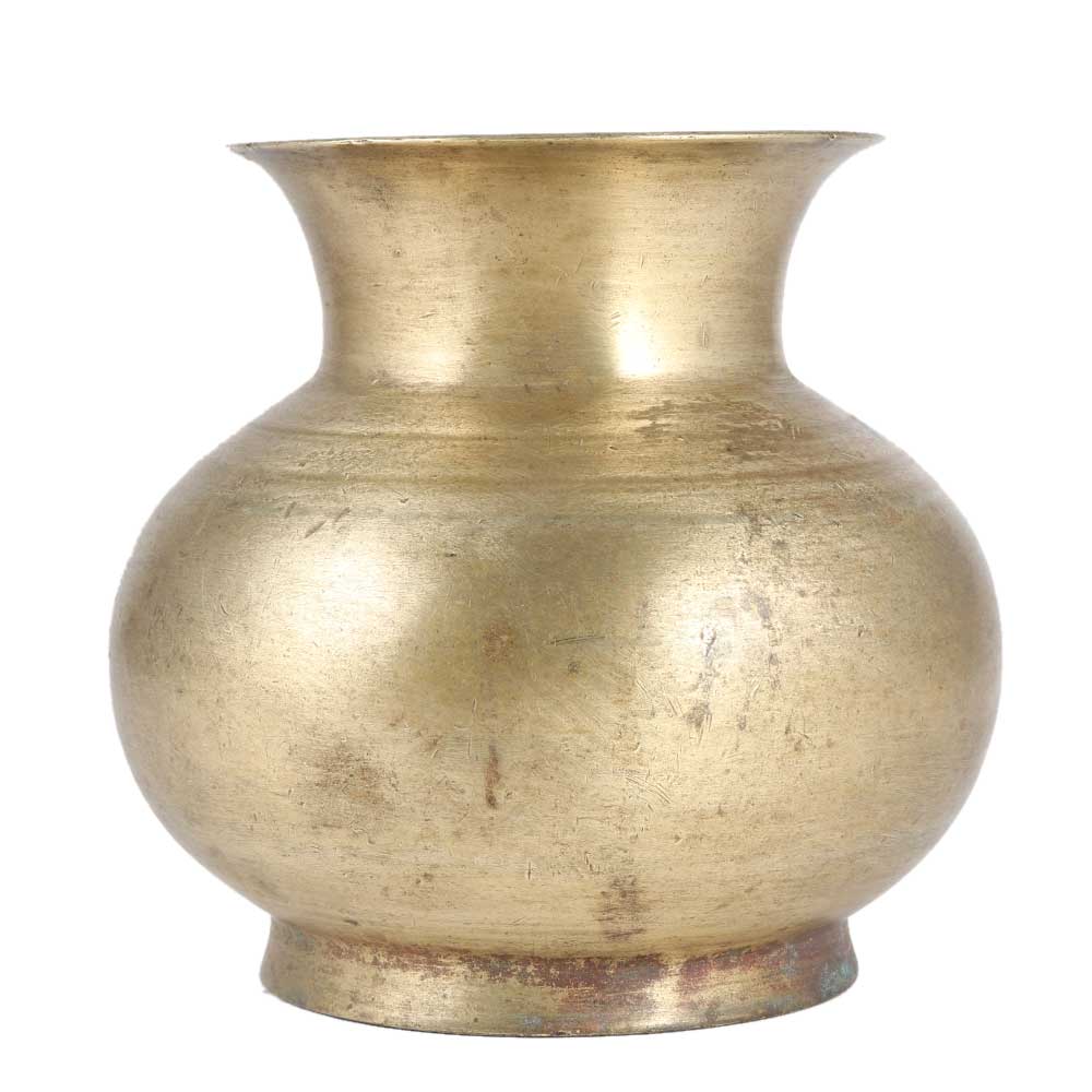 Heavy water pot made of solid brass is made by  the master craftsmen of india. This is an old hindu religious water pot used for decoration. It is also suitable for collection. It has the classical round and pot shape and is popularly known as  lota. Best for collecting and embellishing.