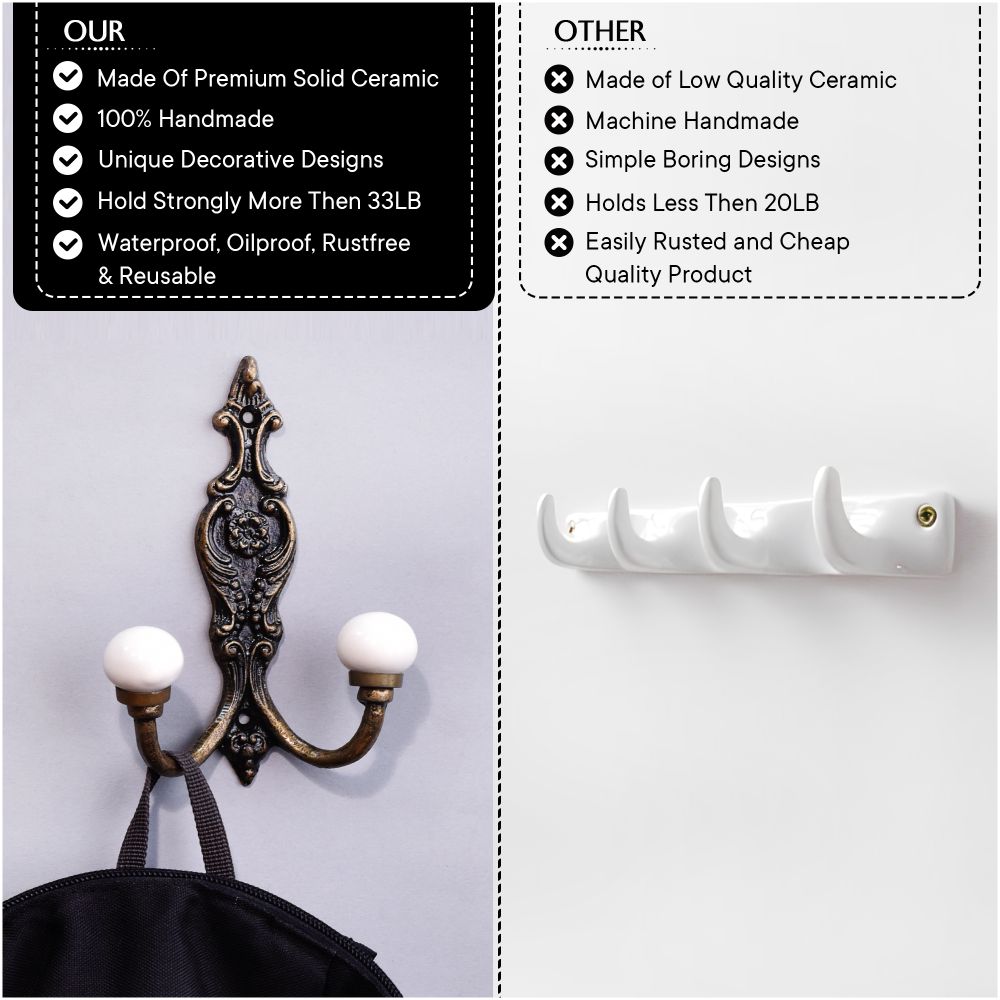 Solid Cream Ceramic Iron Hook. When Put on Wall or Cabinet It Gives A Sturdy Look. This Hook is Strong Enough to Hold Your Cloths, Keys, Tea Cups, Coffee Mugs, Hand Towels Etc