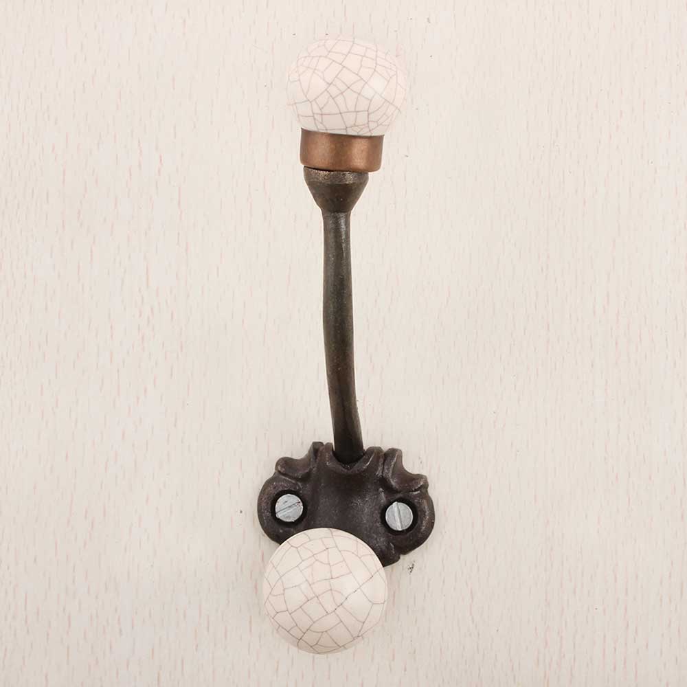 Solid Cream Crackle Iron Hook-Ehg-82. When Put on Wall or Cabinet It Gives A Sturdy Look. This Hook is Strong Enough to Hold Your Cloths, Keys, Tea Cups, Coffee Mugs, Hand Towels Etc.