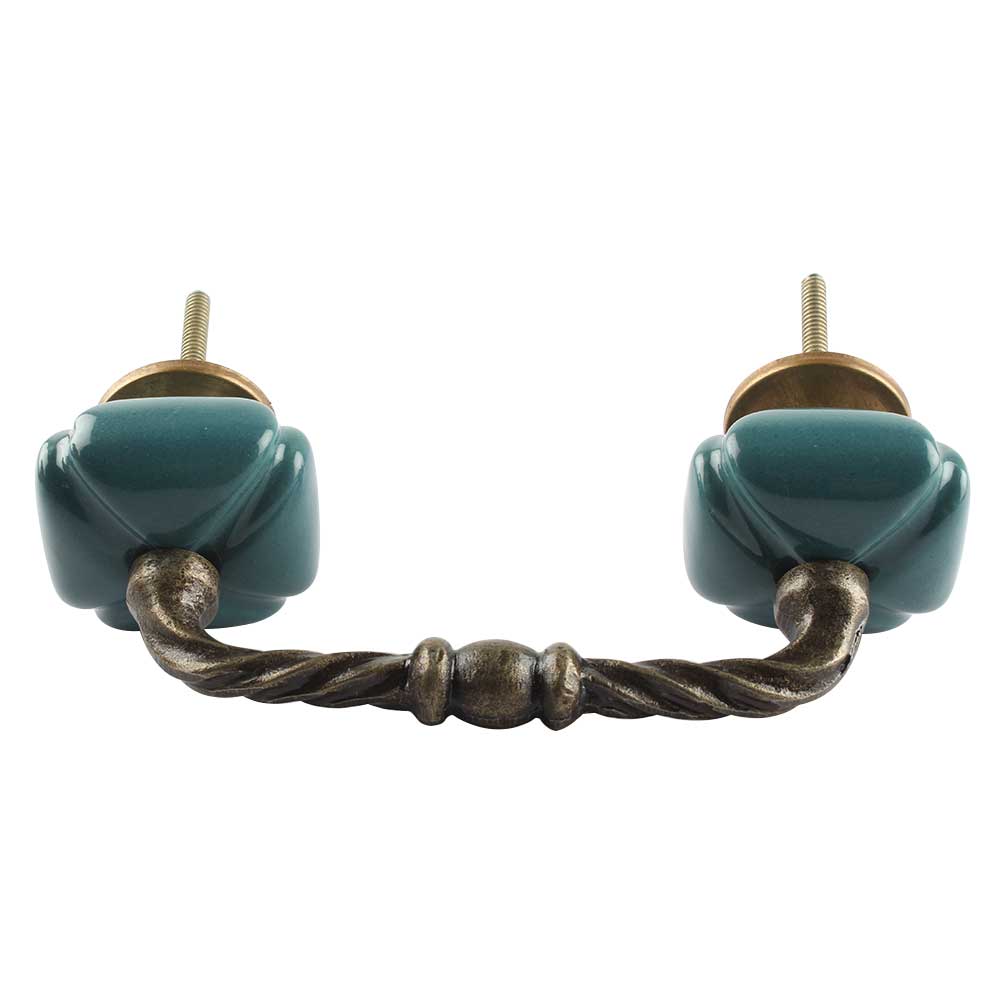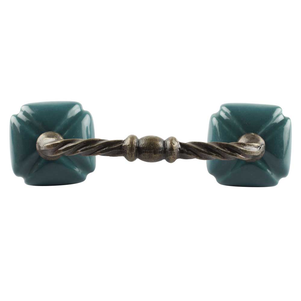 Solid Forest Green Square Ceramic Cut Bridge Handles. Ideal for Drawer, Dresser, Cabinet, Wardrobe, Cupboard and Almirah etc.