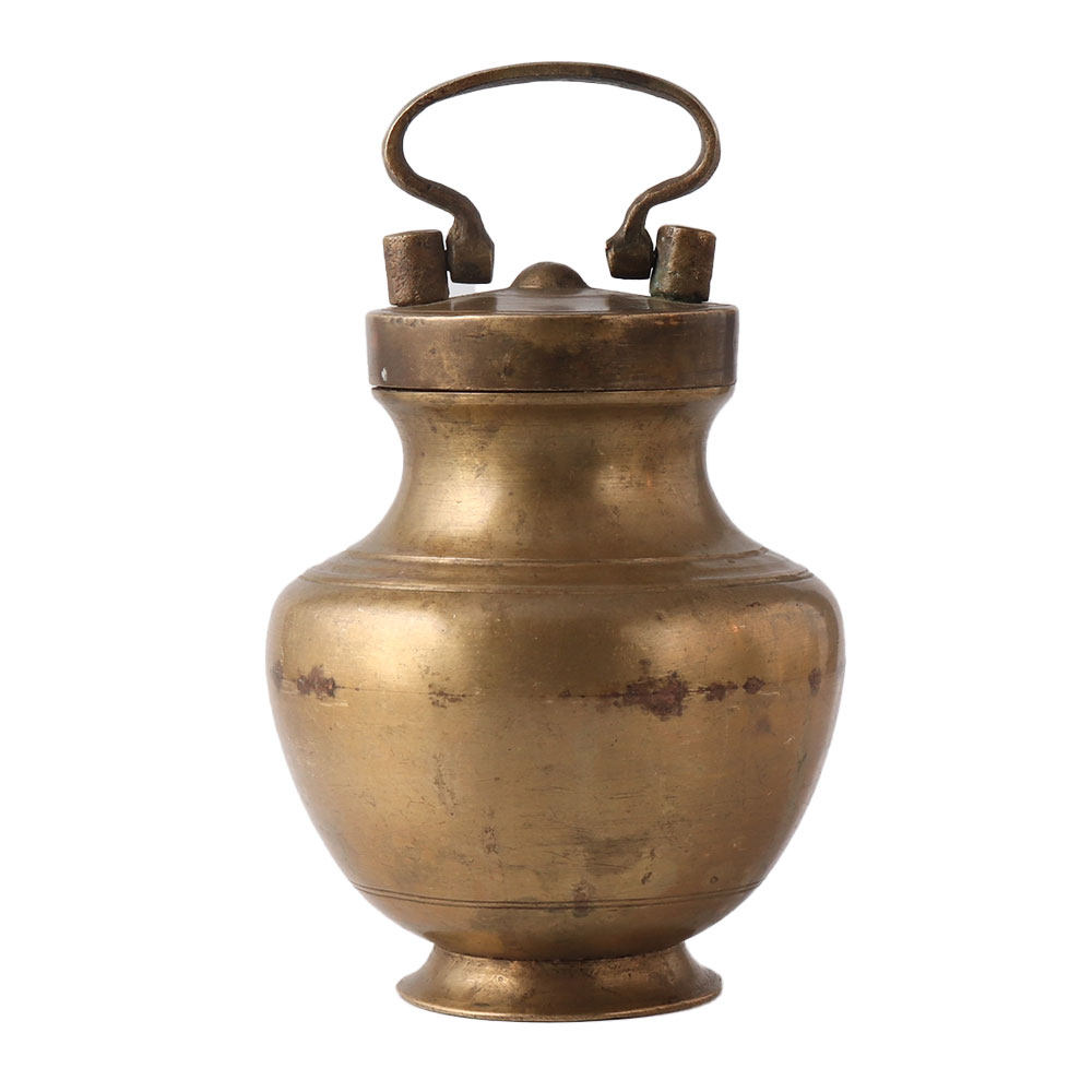 Indian religious holy water pot made of antique brass. Water Pot for a Hindu Sadhu with Stopper. The kamandal is a crucial component of Hindu worship. Holy water like Ganga Jal is kept safe by using kamandalam. Brass was used to make this kamandal. A Very Lucky Present To Give Someone. Holy Water Pot, a Decorative Hindu Religious Item, Is Available To Add To Your Collection. Excellent Piece for Display! Beautiful décor and unique gifts. A lovely work of art with a lovely decorative shape. Prepared To Join Your Collection. Gift For Lovers Of Medieval Craft.