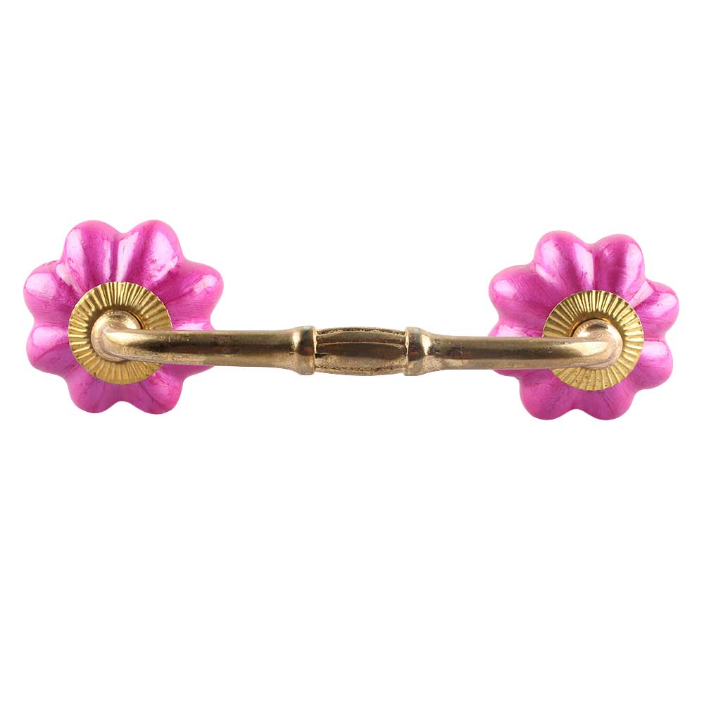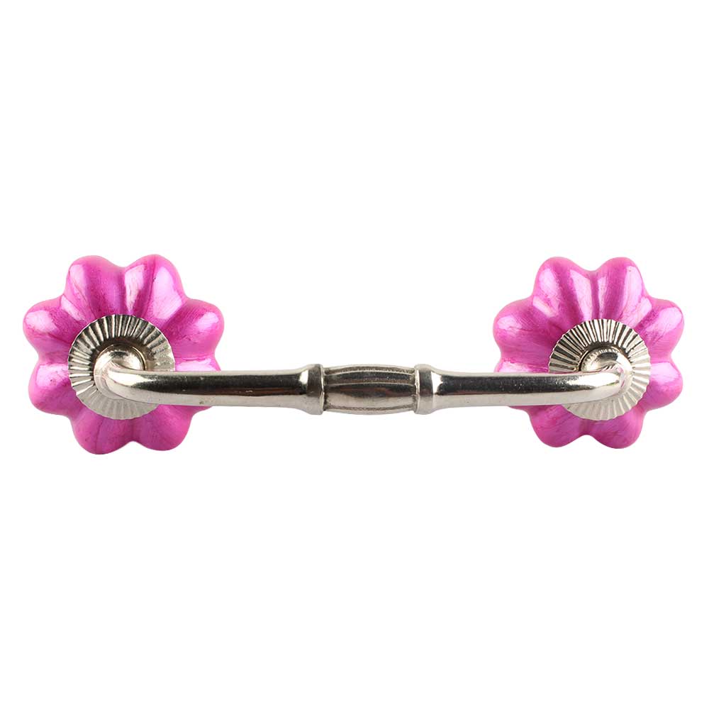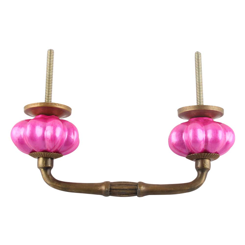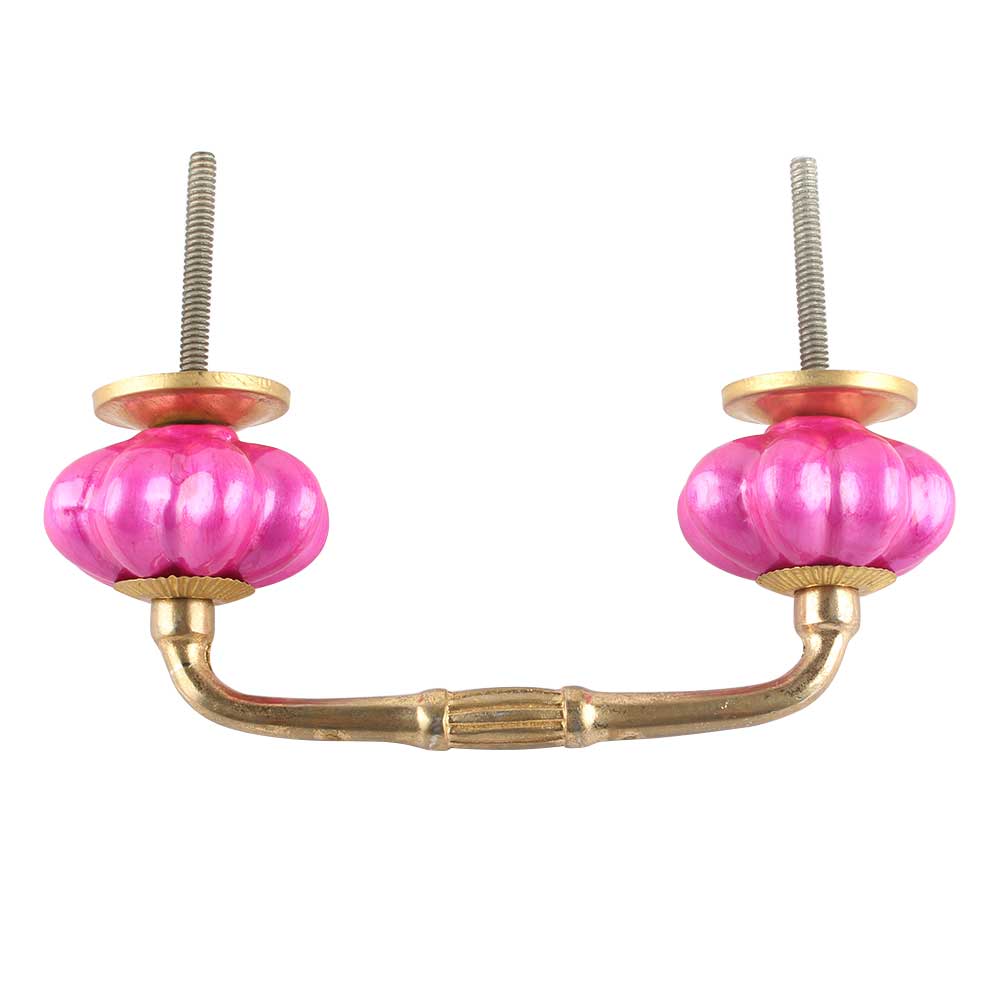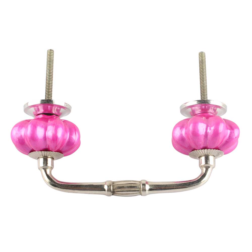 Solid Neon Pink Ceramic Melon Bridge Handle. Ideal for Drawer, Dresser, Cabinet, Wardrobe, Cupboard and Almirah etc.