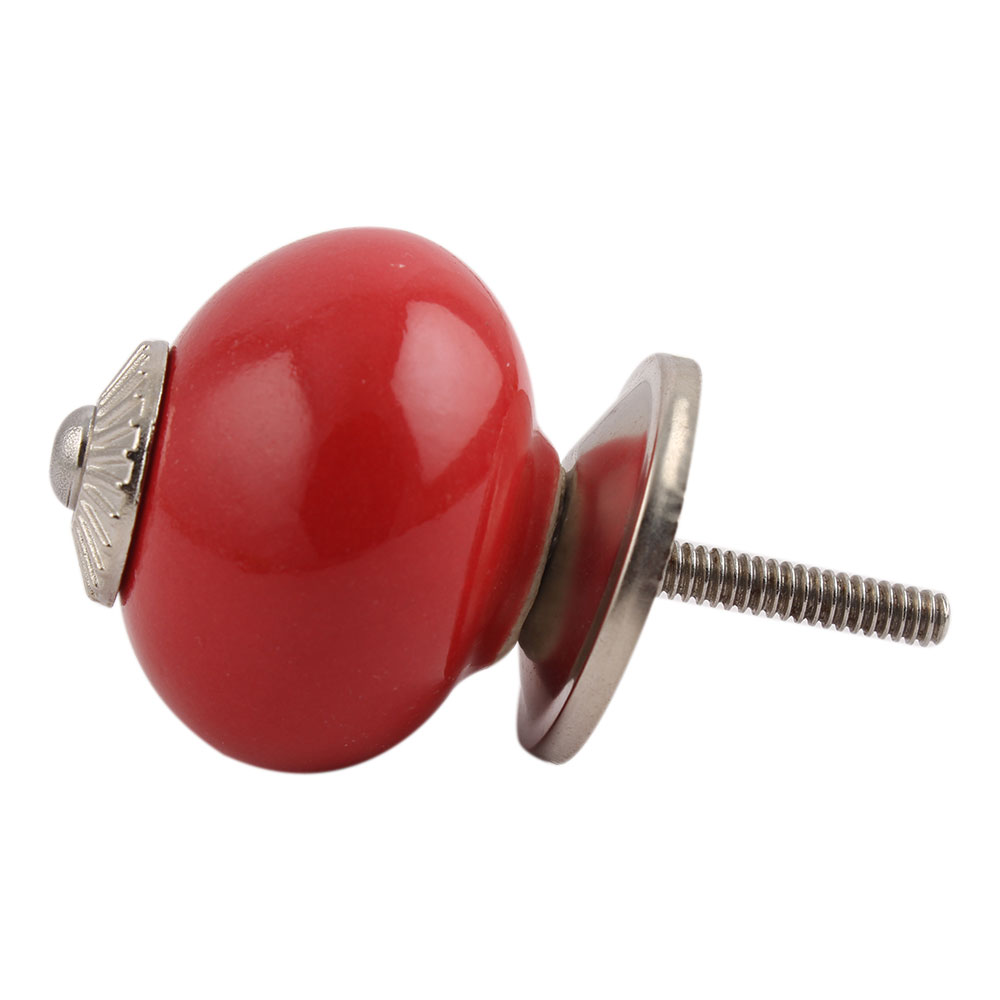 Solid Red Silver Fitting Ceramic Cabinet Knob