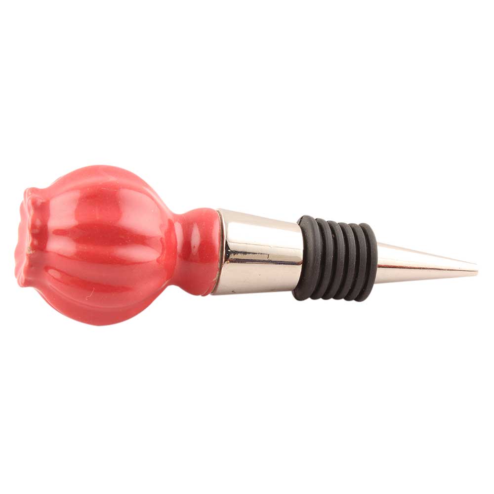 Solid Red Umbrella Ceramic Wine Stopper. Zinc Alloy Wine Bottle Stopper with Attractive Jute Bag Packaging.