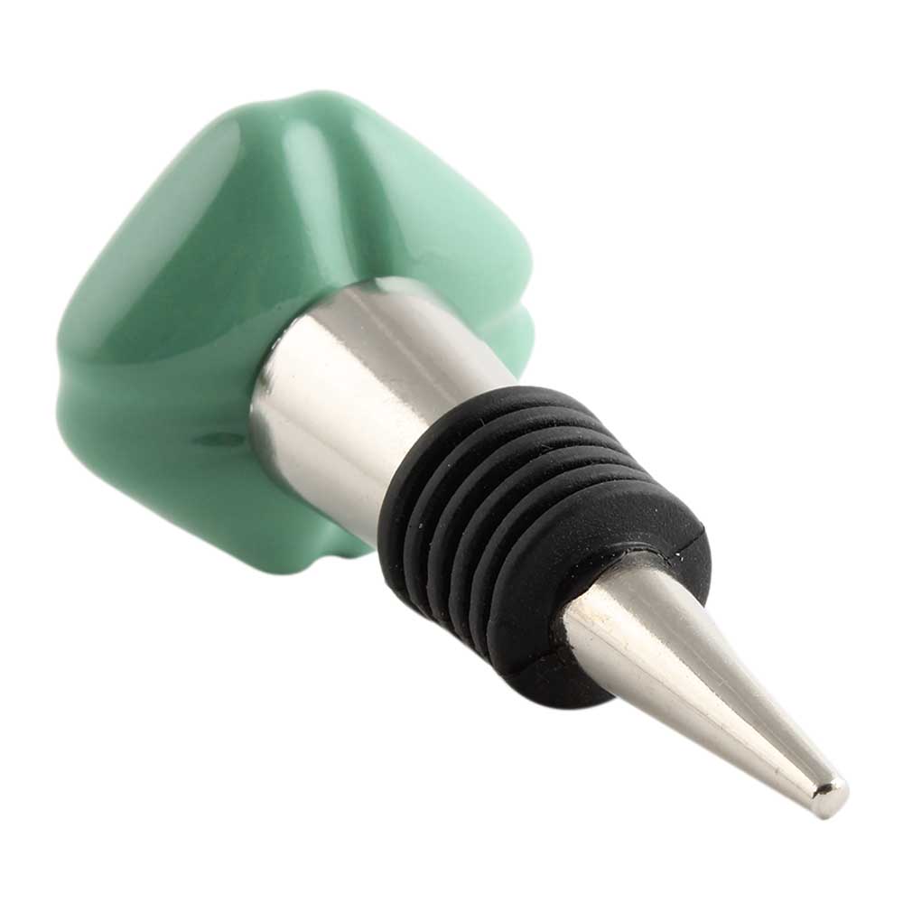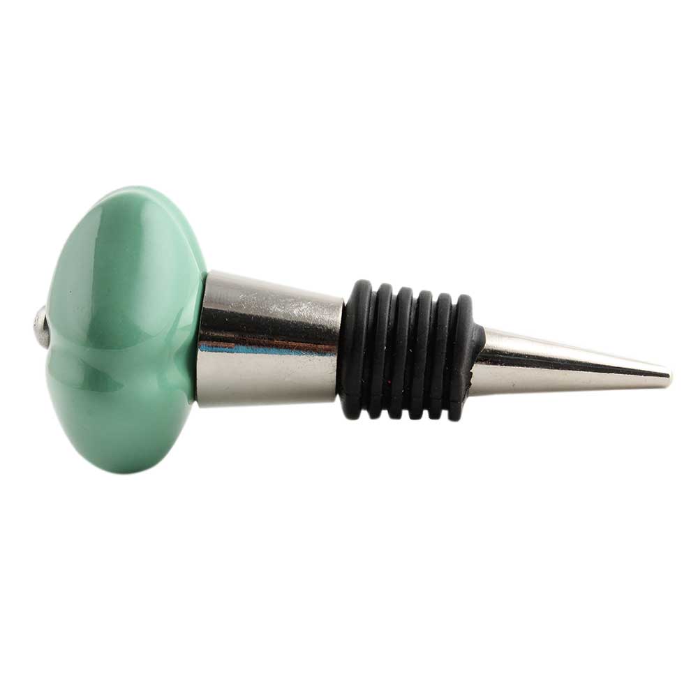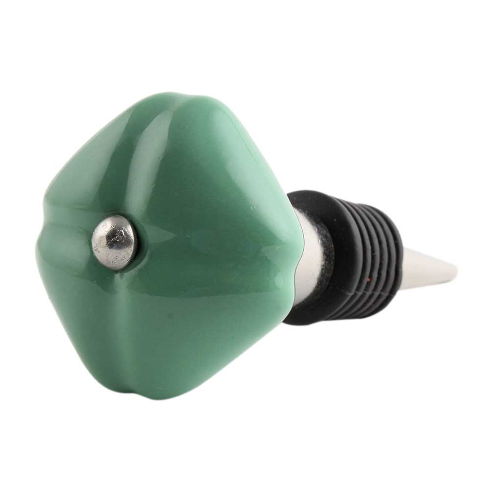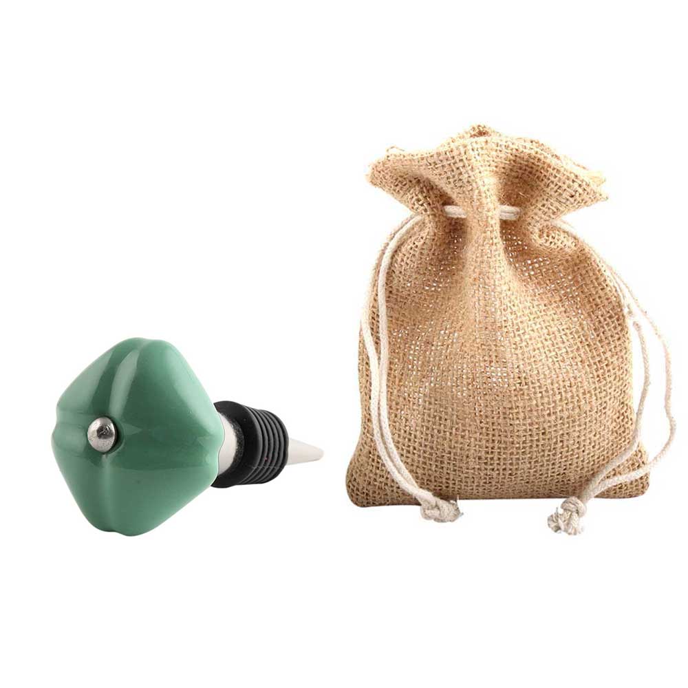 Solid Sage Green Medium Square Ceramic Wine Bottle Stopper. Zinc Alloy Wine Bottle Stopper with Attractive Jute Bag Packaging.