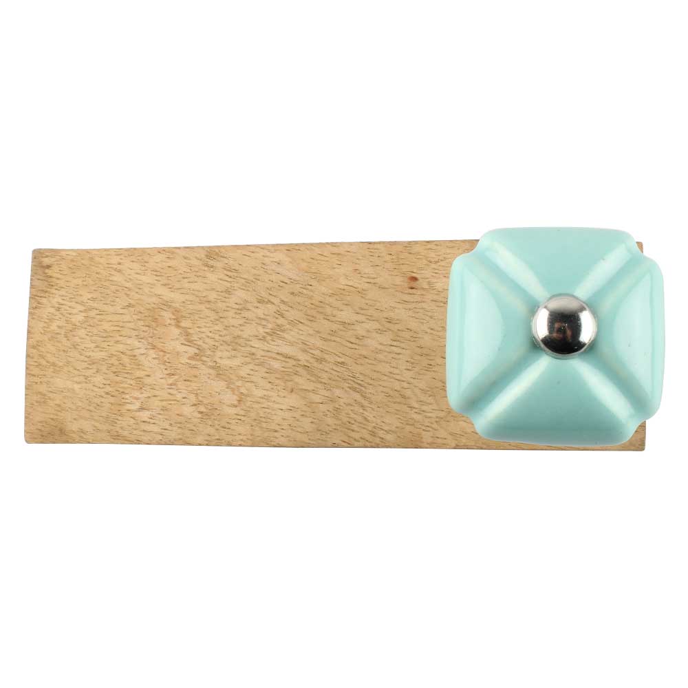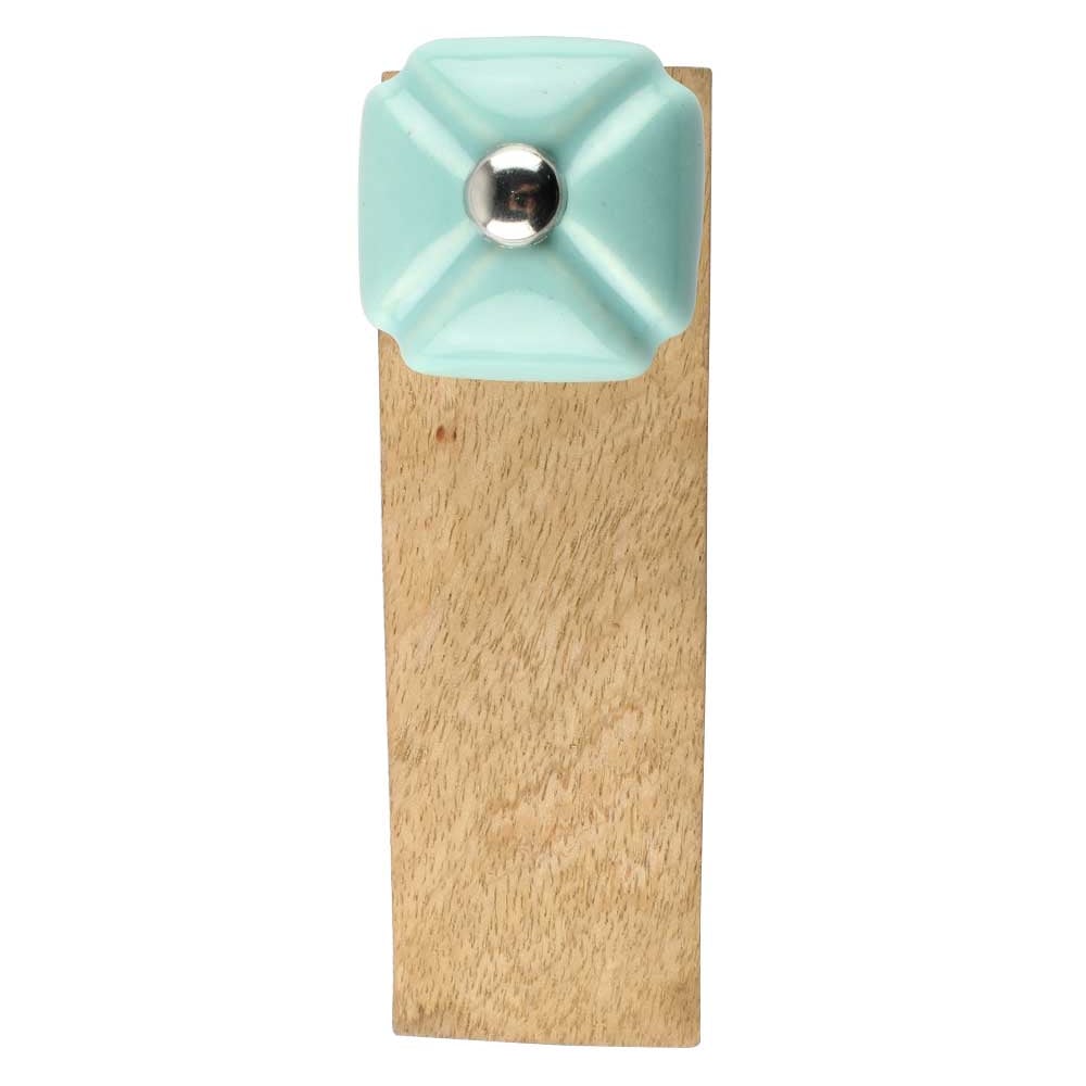 Handmade Ceramic and Wooden Door Stopper.Wooden Door Stopper with a Ceramic Knob to Carry it Easily. This Wooden Door Stopper has Glue Dots under it to Ensure that it does not Slip. It is Handmade by the Craftsmen of India and this Innovative Door Stopper won't Disappoint You.