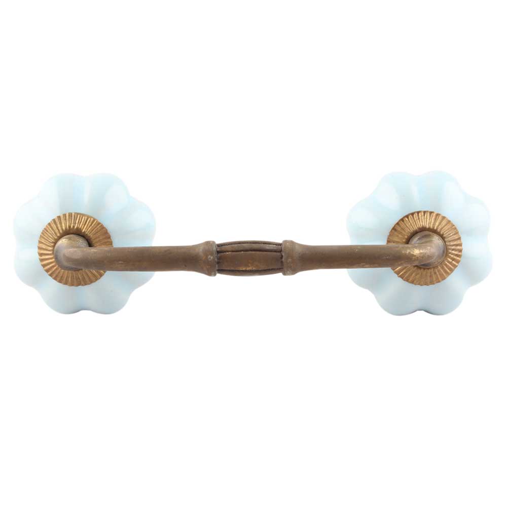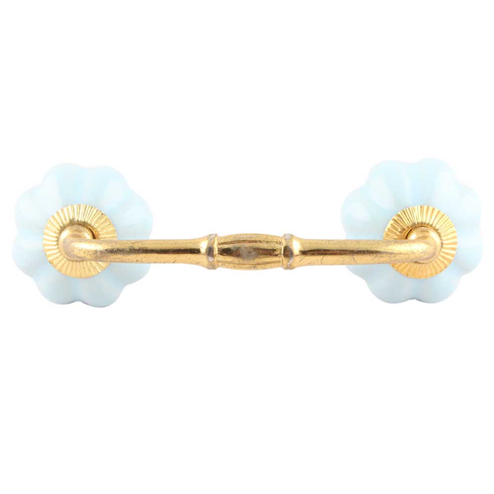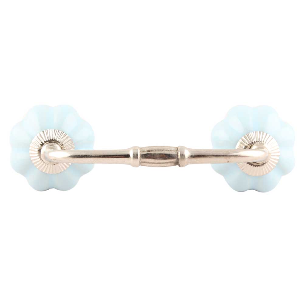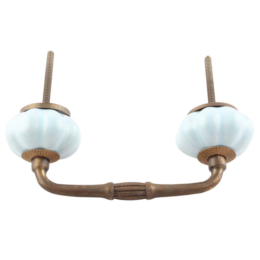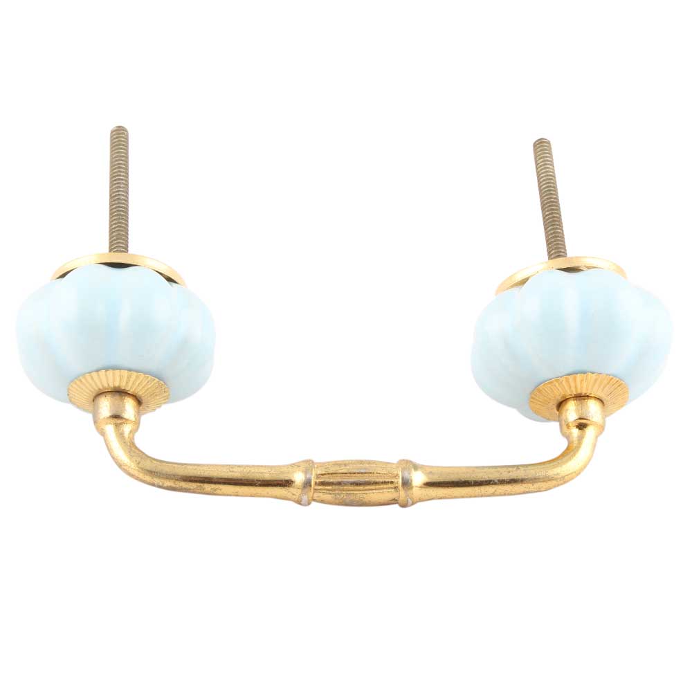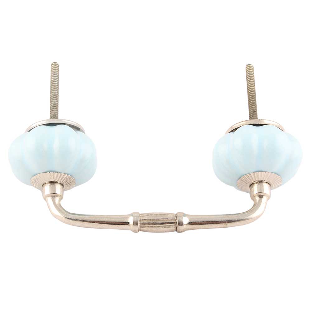 Solid Sky Blue Ceramic Melon Bridge Handles. Ideal for Drawer, Dresser, Cabinet, Wardrobe, Cupboard and Almirah etc.