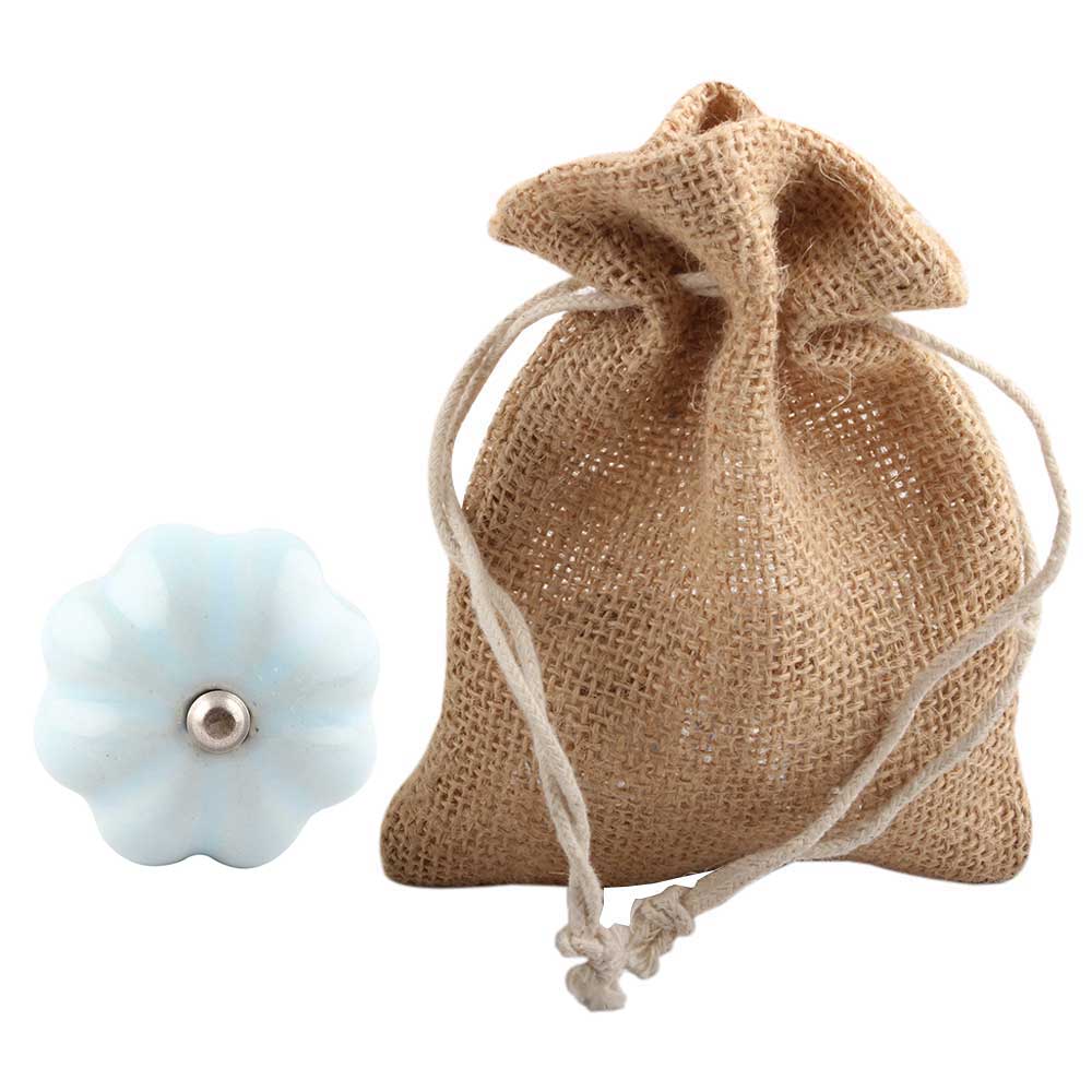 Solid Sky Blue Ceramic Melon Wine Stopper. Zinc Alloy Wine Bottle Stopper with Attractive Jute Bag Packaging.