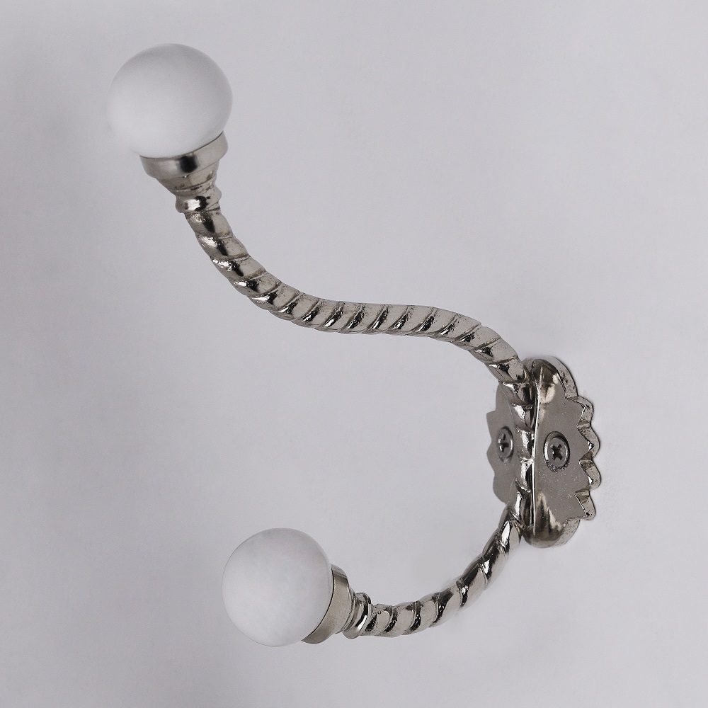 Material: Solid ceramic knob with heavy-gauge iron hook Finish: Glossy white ceramic with matte black iron base Installation: Single screw mount with hardware included