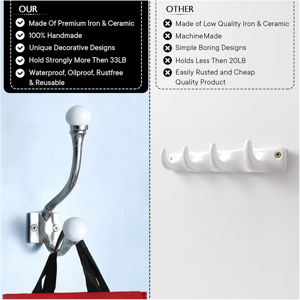 Strong Everyday Function Timeless, Versatile Design Durable and Low Maintenance Naturally Antimicrobial Surface Install a row of white ceramic hooks on a wood plank for a modern-rustic coat rack that’s both functional and stylish.