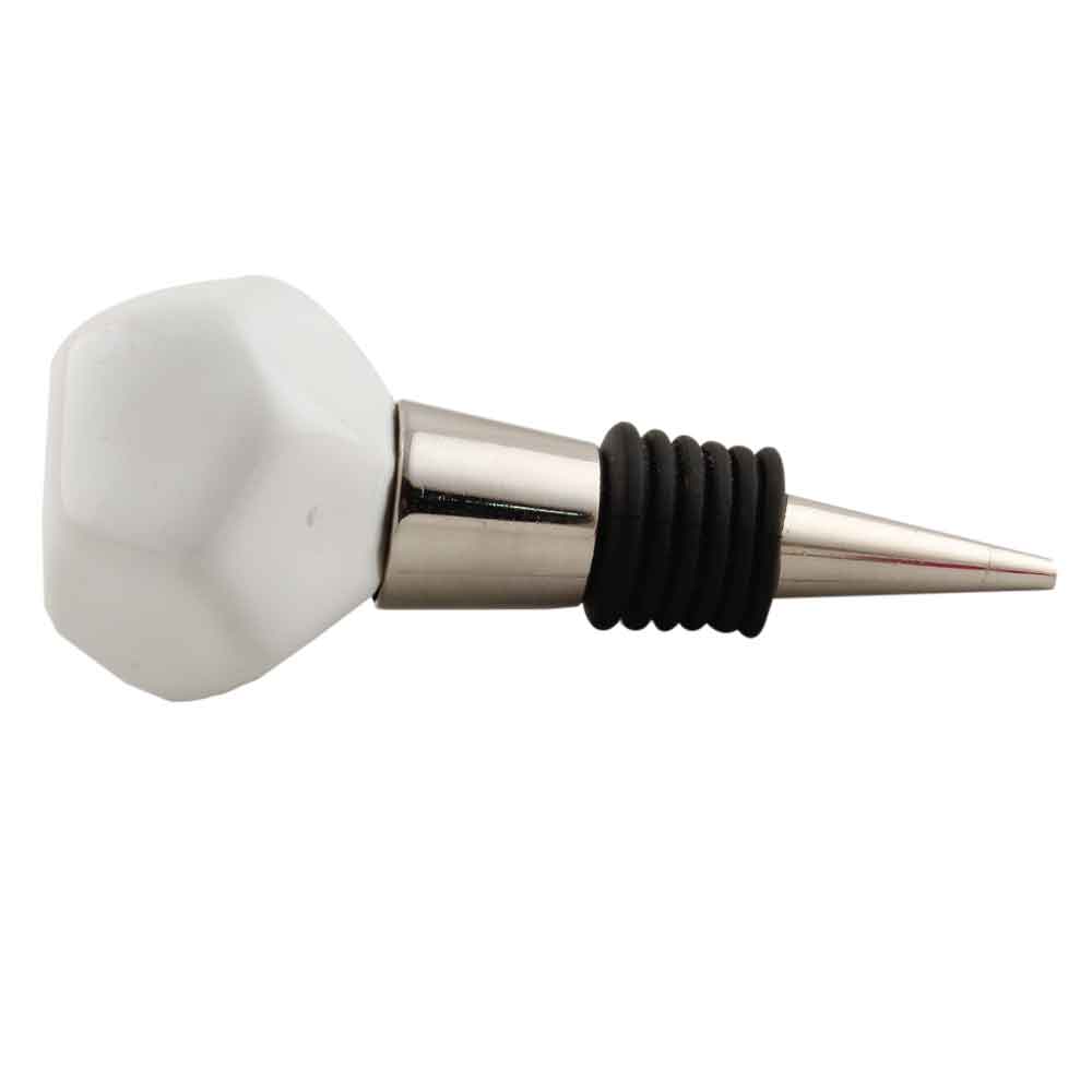 Solid White Octagon Ceramic Wine Stopper. Zinc Alloy Wine Bottle Stopper with Attractive Jute Bag Packaging.