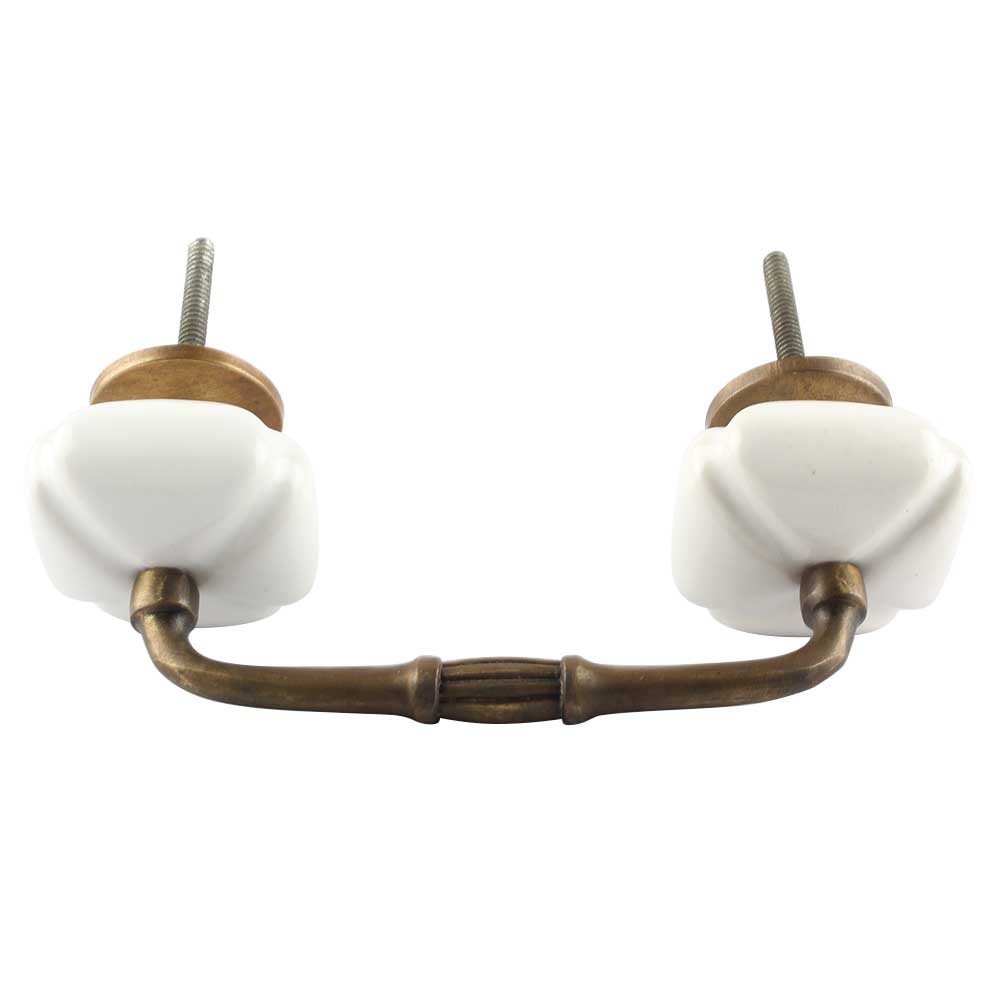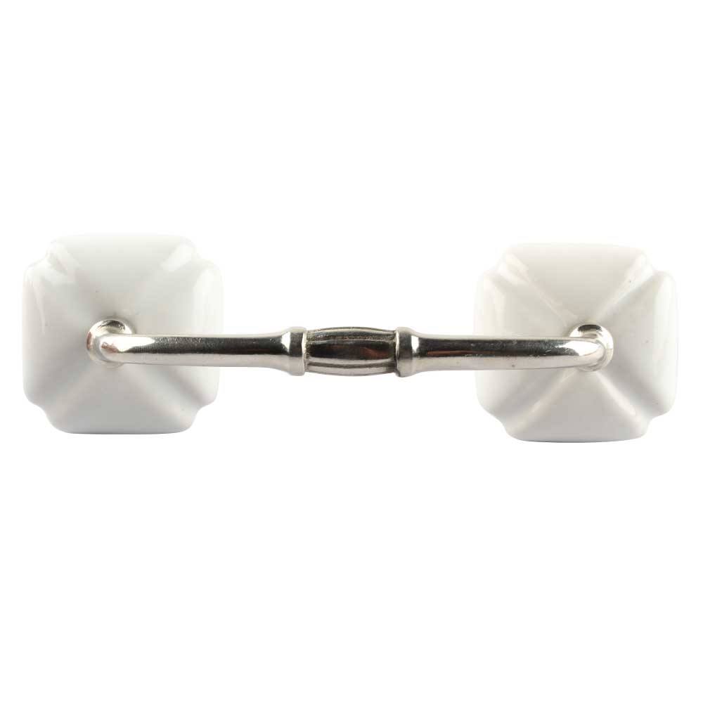 Solid White Square Ceramic Bridge Handle. Ideal for Drawer, Dresser, Cabinet, Wardrobe, Cupboard and Almirah etc.
