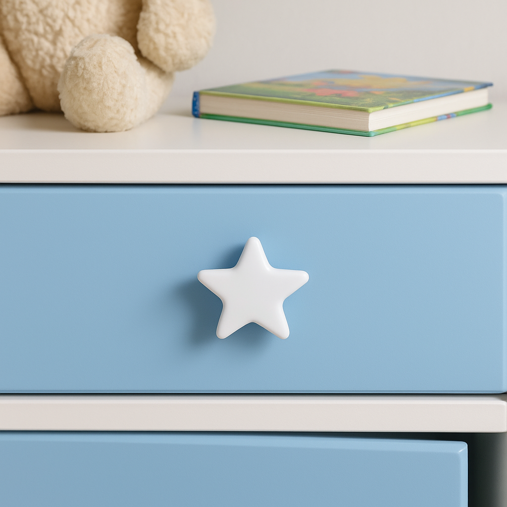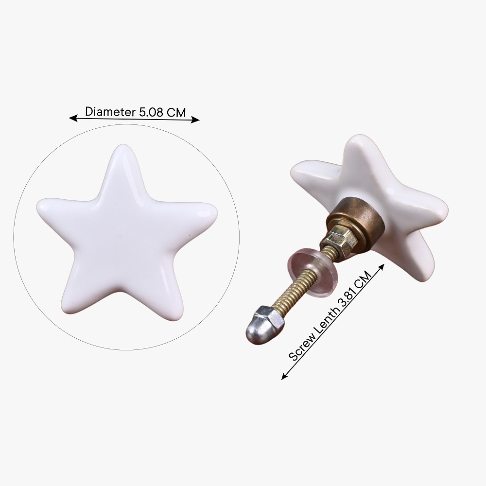 This ceramic knob showcases a clean, minimalist star shape in solid white, making it a versatile addition to various furniture styles. Whether in a child's room, a cozy living room, or even the kitchen, this knob effortlessly enhances your furniture with a whimsical yet elegant charm.