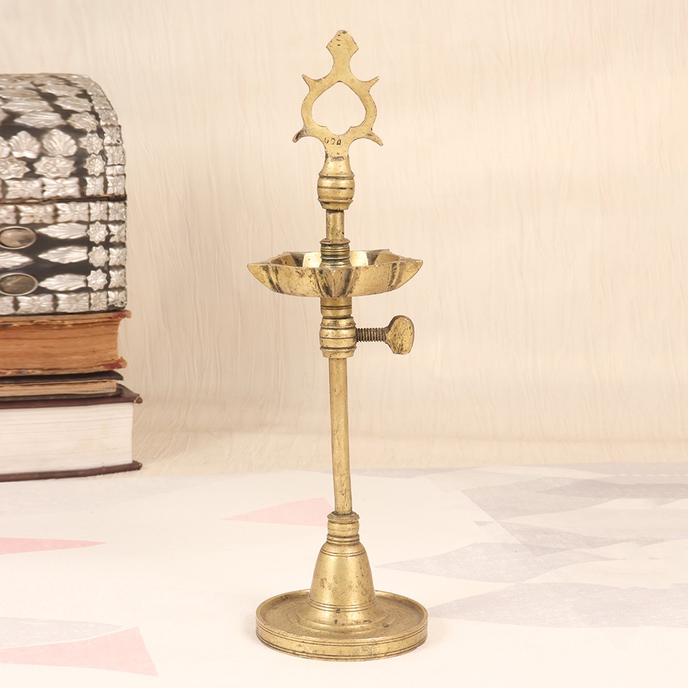 Immerse yourself in the timeless elegance of our exquisite brass oil lamp, a masterpiece that seamlessly blends traditional South Indian artistry with modern functionality. Crafted with meticulous attention to detail, this captivating lamp features an adjustable height and the capacity to illuminate your space with the warm, flickering glow of up to 5 jyots. Elevate the ambiance of any room with the enchanting radiance of this brass oil lamp. Its timeless design and adjustable height make it a versatile addition to your living space, whether you're seeking to create a cozy, intimate atmosphere or a stunning focal point. Experience the captivating allure of a bygone era, as the gentle flicker of the flames dances across the rich, burnished brass, infusing your surroundings with a sense of tranquility and warmth. This exquisite oil lamp is the perfect companion for those who appreciate the beauty of traditional craftsmanship and the soothing ambiance of natural lighting. Invite the essence of South Indian heritage into your home and transform any space into a serene oasis of relaxation and inspiration.