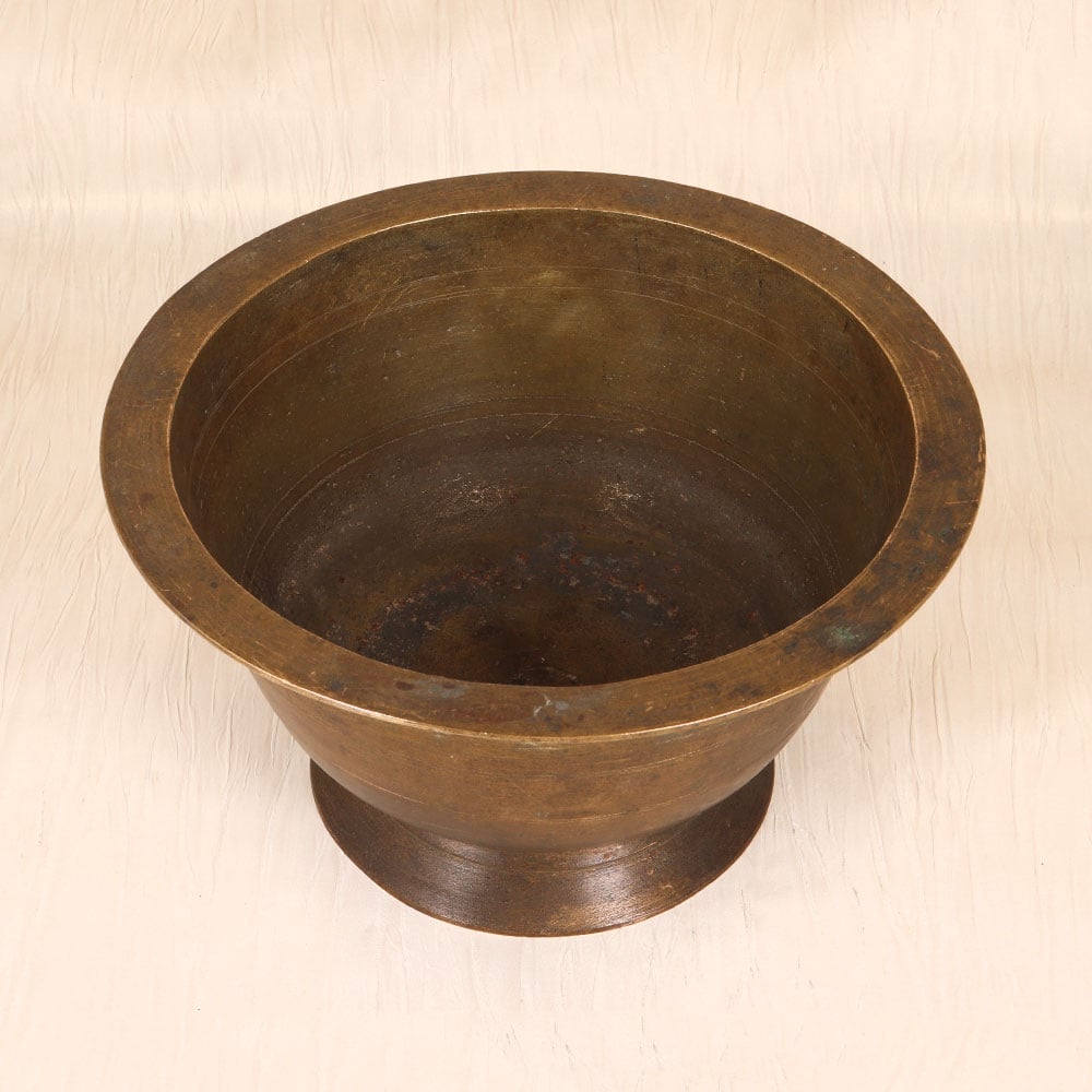 Immerse yourself in the timeless traditions of South India with this stunning vintage brass holy pot, crafted with unparalleled artistry. Designed to elevate your spiritual practice, this captivating vessel beckons you to experience the profound connection between the divine and the earthly. This holy pot is more than just a functional piece - it's a work of art that invites you to slow down, reflect, and deepen your spiritual journey. Imagine the soothing sound of water gently cascading over the intricate brass surface as you bathe your deities or perform sacred rituals. The act of offering water becomes a meditative experience, allowing you to connect with the divine on a profound level. Whether you're a devout practitioner or simply appreciative of South Indian culture, this vintage brass holy pot will transform your sacred space and elevate your spiritual practice. Infuse your home with the timeless beauty and spiritual significance of this exquisite piece, and let it inspire you to cultivate a deeper connection with the divine.