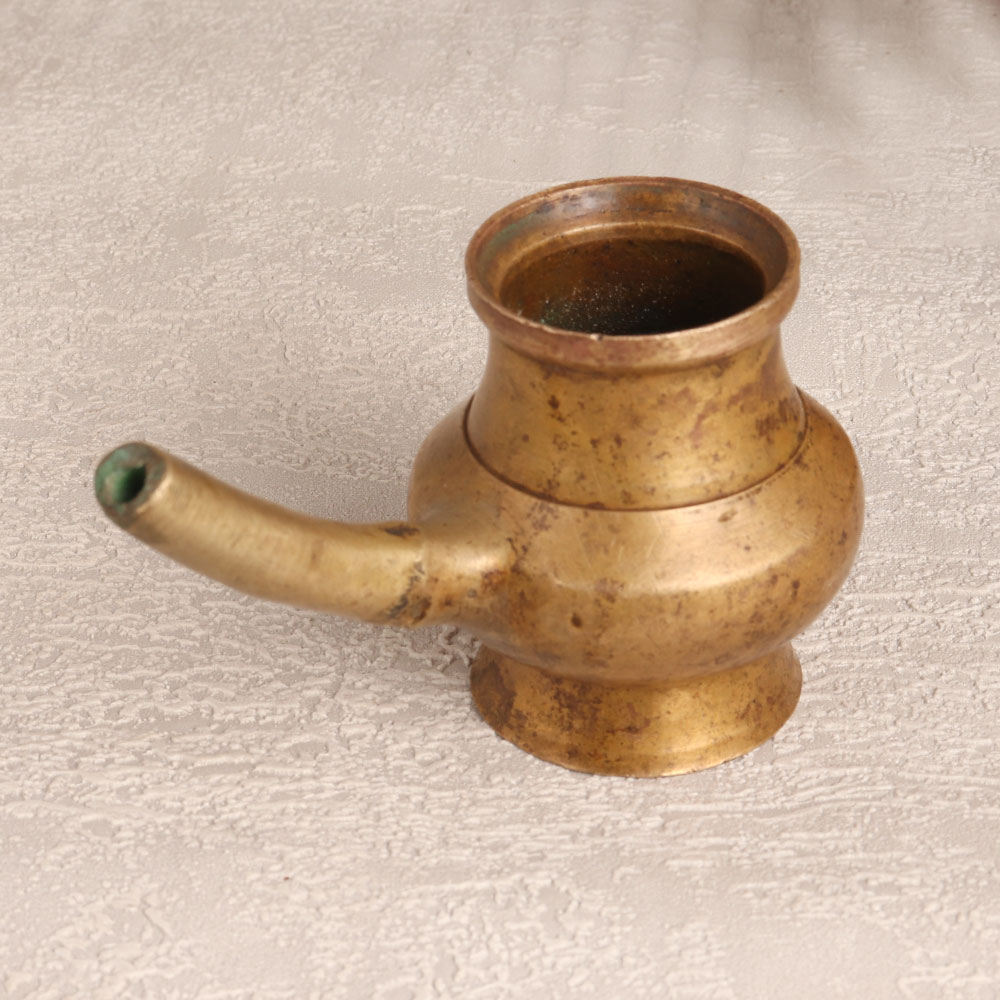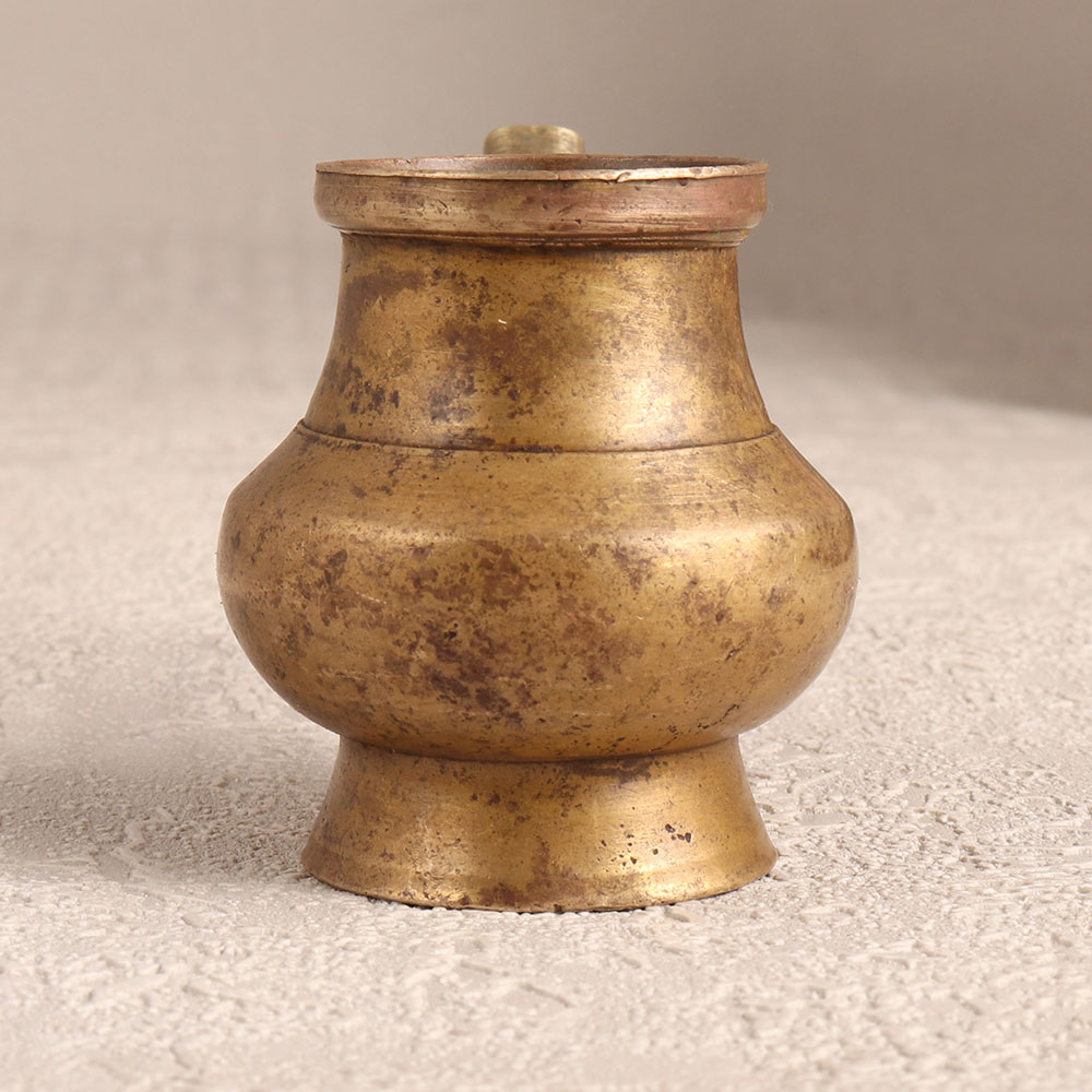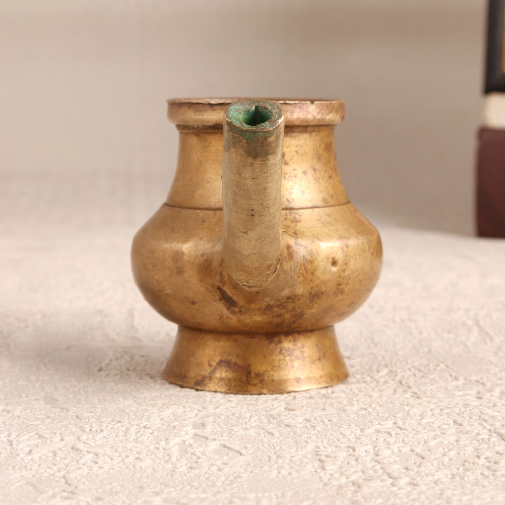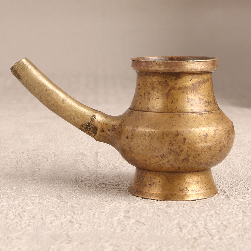 Enhance your spiritual space with the timeless elegance of our Vintage Brass Holy Water Pot which is affectionately known as the Sagar Pot. Meticulously crafted by highly skilled Indian artisans in the revered tradition of South Indian Art, this sacred vessel exudes an antique brown finish, adding a touch of old-world charm to your prayer room or meditation corner. Fashioned from high-quality brass, the pot features a delicately designed spout, allowing for a graceful pour of holy water during prayer rituals or serving as a stunning base for flower decorations. Versatile and aesthetically pleasing, this handmade masterpiece seamlessly complements any environment, whether it be at home, office, restaurant, hotel, or cafe. With its rich cultural heritage and intricate detailing, it serves as a captivating addition to vintage collections and makes for a thoughtful, cherished gift on special, festive, or auspicious occasions.