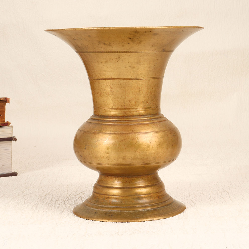Adorn your interior with the timeless charm of our Vintage Brass Flower Pot which is a true masterpiece crafted by talented Indian artisans in the intricate style of South Indian Art. The pot boasts a rich antique brown finish, adding a touch of old-world elegance to any space. Handmade with precision and care, this exquisite piece is a testament to the artistry passed down through generations. Made from high-quality brass, the flower pot is not just a decorative item but a symbol of craftsmanship and heritage. Its versatile design makes it suitable for various settings, whether adorning your home, office, restaurant, hotel, or cafe. The warm, earthy tones and ornate detailing make it a captivating addition to vintage collections. This unique flower pot isn\'t just a statement piece but also a thoughtful gift for your loved ones on special, festive, or auspicious occasions. Its classic design transcends trends, ensuring a timeless appeal that will be cherished for years to come.