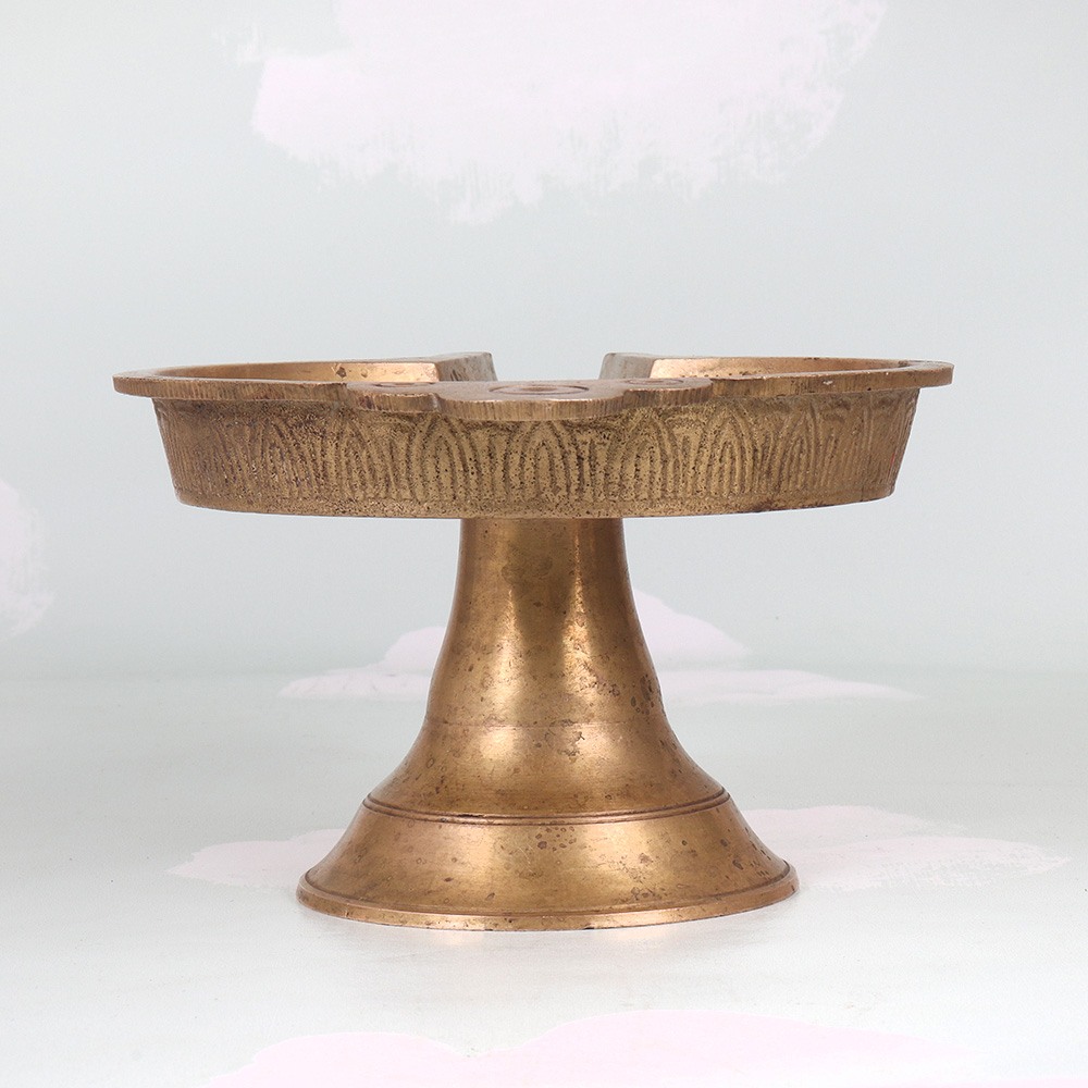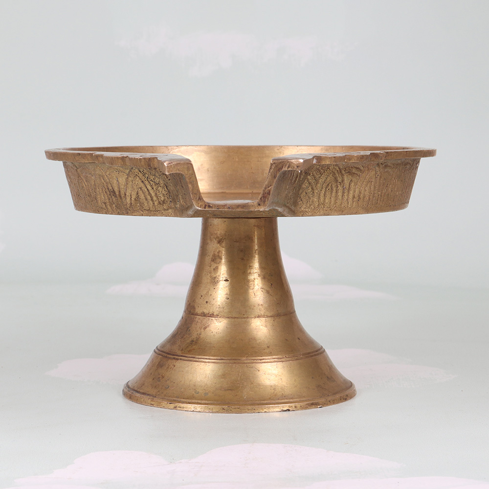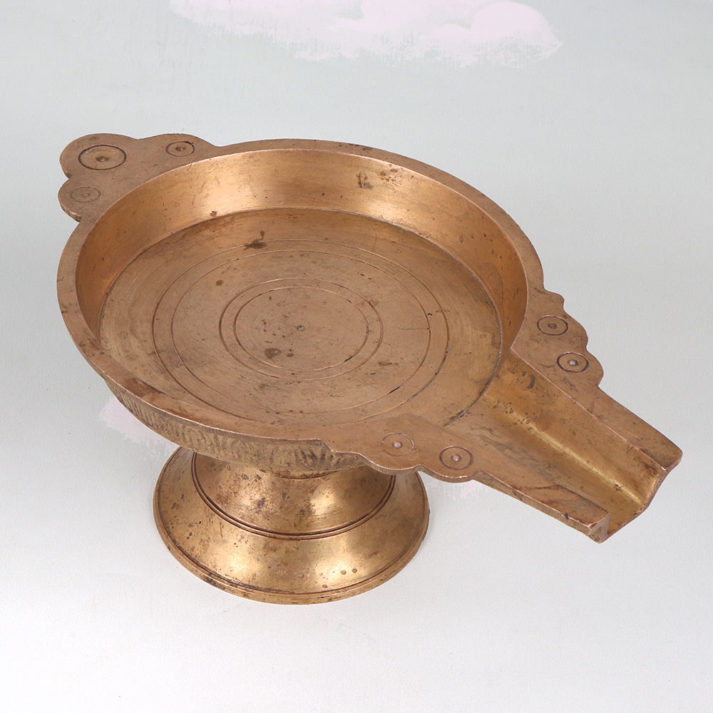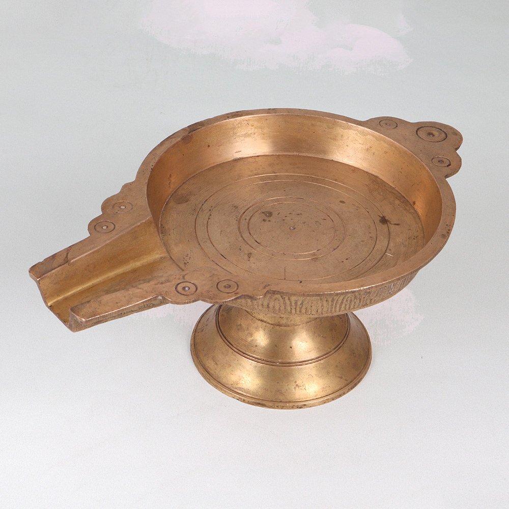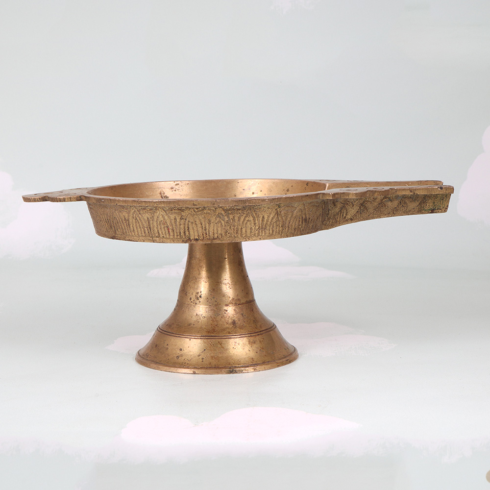 Illuminate your space with the timeless elegance of our Vintage Brass Oil Lamp. Crafted in the captivating South Indian art tradition, this lamp evokes the rich cultural heritage of the region with its ornate, intricate design. Bring the allure of ancient India into your modern space with this stunning oil lamp. The warm, flickering glow will transport you to a world of spice-scented bazaars and ornate palace interiors. More than just a functional light source, this lamp is a work of art that will elevate the ambiance of any room. Whether placed on an end table, mantel, or shelf, the Vintage Brass Oil Lamp lends an air of timeless sophistication. Its classic silhouette and handcrafted details make it a cherished piece that will only grow more beautiful with age. Infuse your home with the rich heritage of South India and enjoy the mesmerizing beauty of this one-of-a-kind lamp.