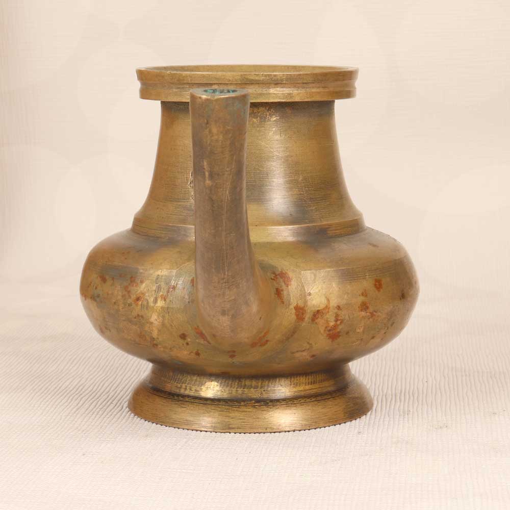 Transport your home décor to ancient times with this authentic vintage brass holy water pot from South India. Featuring a classic plain brown finish, this pot is perfect for adding an exotic touch to any room. The spout allows for easy pouring during rituals and prayer, making this vessel as practical as it is beautiful. Place it on your altar, fill it with flowers, or display it as an eye-catching accent piece. With its timeless design, this brass pot brings the mystique of ancient traditions to modern life. Make your home a sanctuary with this gorgeous accent from overseas.