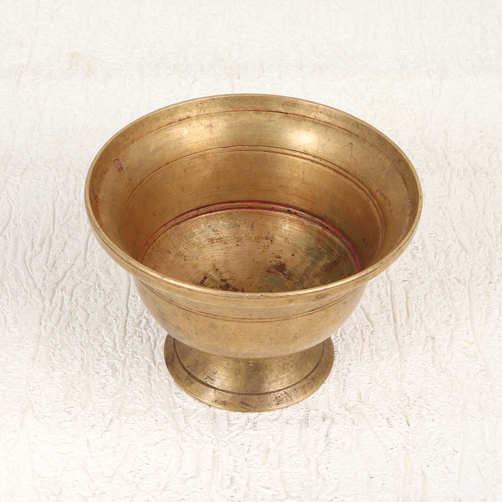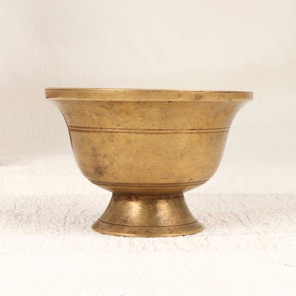 Add a touch of old-world charm to your puja room with this vintage brass holy Kumkum Cup. Crafted from solid brass metal in a classic South Indian art style, this cup elevates a sacred ritual. This holy Kumkum cup is ideal for applying tilak during your daily prayers or ceremonies. The vintage brass gives it a dignified, traditional feel you'll love displaying. It makes a thoughtful gift for celebrations like housewarmings, weddings, or festivals. Designed to honour ancient customs, this Kumkum cup is for devotees who appreciate fine Indian craftsmanship. Its timeless beauty adds meaning and grace to your rituals. Bring a beloved tradition to life with this brass Kumkum cup.