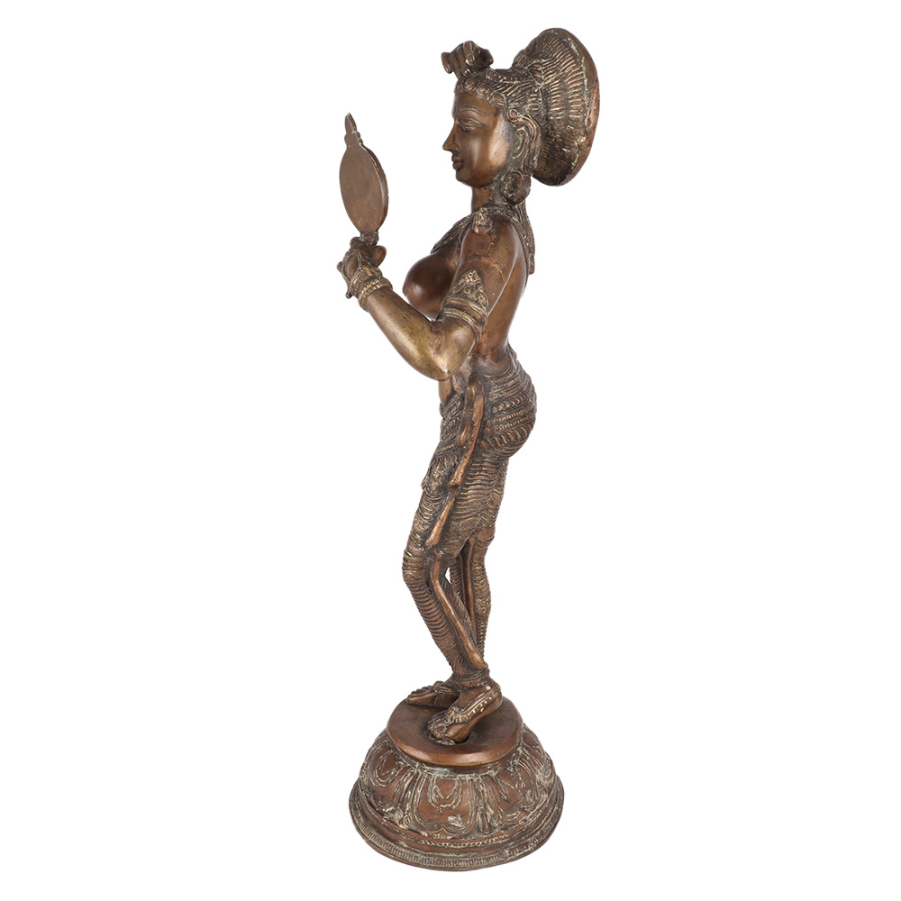 • South Indian Brass Lady Looking Into Mirror Statue