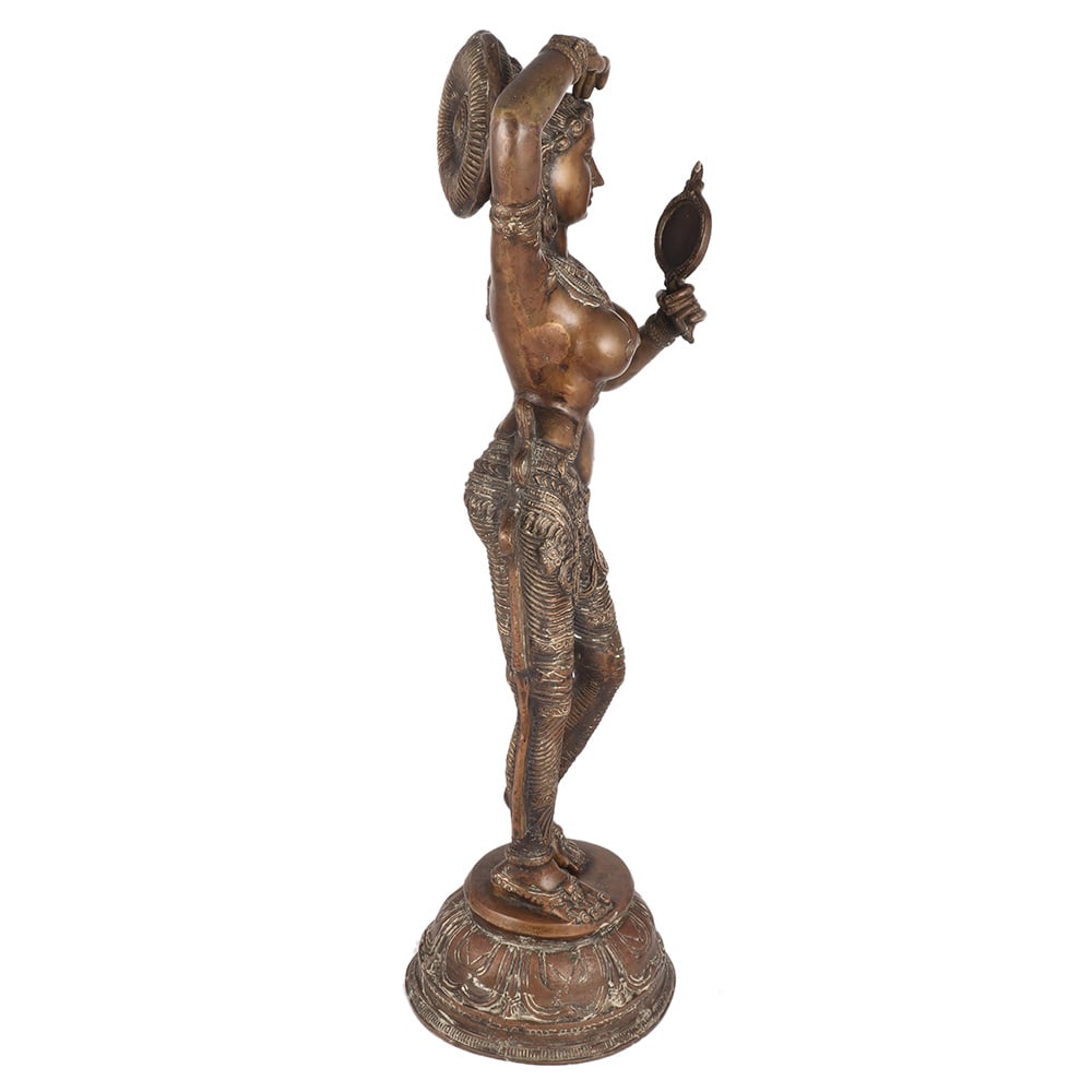 South Indian Brass Lady Looking Into Mirror Statue