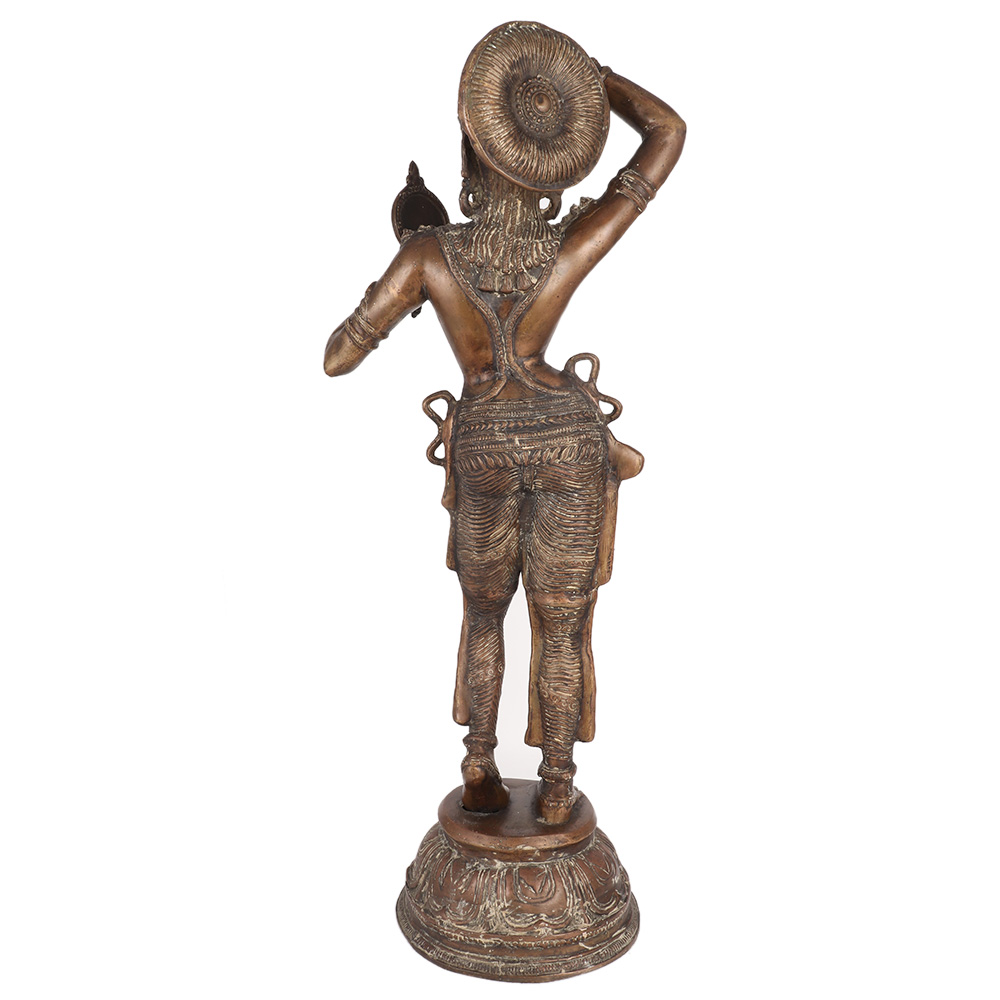 This classical work considered a woman's fidelity as her ultimate virtue, as well as the importance of her beauty and adornment. This brass-statue, as well as its Khajuraho counterpart, symbolise this concept of beauty: beauty combined with morality. The young lady is putting vermilion to her hair parting as she is looking in the mirror as part of her make-up. Nice gift for friends and family.